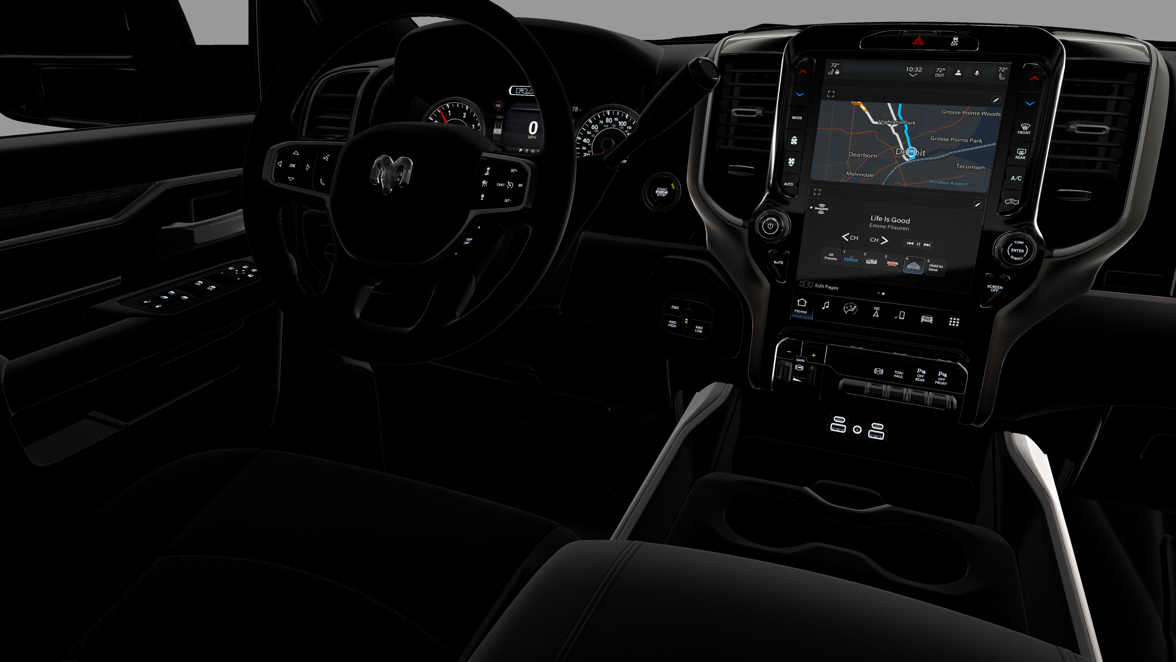 2500 Big Horn is nicely equipped with Big Horn Level 2 Plus Equipment Group (115-Volt Auxiliary Front Power Outlet, 115V Auxiliary Rear Power Outlet, 12 Touchscreen Display, 2 Way Rear Headrest Seat, 2nd Row in Floor Storage Bins, 4 Way Front Headrests, 400W Inverter, 4G LTE Wi-Fi Hot Spot, 9 Alpine Speakers with Subwoofer, Active Lane Management System, Adaptive Steering System, Air Conditioning ATC with Dual Zone Control, Alexa Built-in, Anti-Spin Differential Rear Axle, Apple CarPlay, Auto High Beam Headlamp Control, Auto Power-Folding Mirrors, Auto-Dimming Rear-View Mirror, Black Exterior Mirrors, Blind Spot and Cross Path Detection, Bucket Seats, Center Stop Lamp with Cargo View Camera, Cluster 7.0 TFT Color Display, Connected Travel and Traffic Services, Connectivity - US/Canada, Dampened Tailgate, Disassociated Touchscreen Display, Drowsy Driver Detection, Dual Glove Boxes, Dual Wireless Charging Pad, Emergency Vehicle Alert System (EVAS), Exterior 115V AC Outlet, Exterior Mirrors Courtesy Lamps, Exterior Mirrors with Heating Element, Exterior Mirrors with Supplemental Signals, Foam Bottle Insert (door Trim Panel), Folding Flat Load Floor Storage, Footwell Courtesy Lamp, For Details, Visit DriveUconnect.com, For More Info, Call 800-643-2112, Forward and Reverse Utility Lights, Front Seat Back Map Pockets, Full Length Upgraded Floor Console, Global Telematics Box Module, Glove Box Lamp, Google Android Auto, GPS Antenna Input, GPS Navigation, HD Radio, Heated Front Seats, Heated Steering Wheel, Integrated Voice Command with Bluetooth®, LED Bed Lighting, LED Tail Lamps, Locking Lower Glove Box, Luxury Steering Wheel, Manual Adjust 4-Way Front Passenger Seat, Media Hub with 2 Charge Only USBs, Mirror Running Lights, MOPAR Deployable Bed Step, MOPAR Spray in Bedliner, MOPAR Trailer Camera Wiring with No Camera, Off-Road Info Pages, Power 2-Way Driver Lumbar Adjust, Power Adjust 8-Way Driver Seat, Power Adjust Mirrors, Power Adjustable Pedals, Power Heated Folding Telescopic Mirrors, Power Telescoping Mirrors, Power-Adjustable Convex Aux Mirrors, Premium Cloth Bucket Seats, Radio: Uconnect 5 Navigation with 12.0 Display, Rain Sensitive Windshield Wipers, Rear 60/40 Folding Seat, Rear Dome with on/Off Switch Lamp, Rear Power Sliding Window, Red Tail Lamp Bezels, Remote Start System, Selectable Tire Fill Alert, SiriusXM Radio Service, SiriusXM with 360L, Steering Wheel Mounted Audio Controls, Sun Visors with Illuminated Vanity Mirrors, Surround View Camera System, Traffic Sign Recognition, Trailer Reverse Guidance, Trailer Tire Pressure Monitoring System, Trailer Tow Pages, and Universal Garage Door Opener), Cold Weather Group (Engine Block Heater and MOPAR Winter Front Grille Cover), Night Edition (Black Exterior Truck Badging, Black Interior Accents, Black Wheel Center Hub, Body Color Grille-Surround, Gloss Black Nostrils/Mic Black Grille, Painted Front Bumper, Painted Rear Bumper, and Wheels: 20 x 8.0 Black Painted Aluminum), Quick Order Package 24Z Big Horn, 4-Wheel Disc Brakes, 40/20/40 Split Bench Seat, 5th Wheel/Gooseneck Towing Prep Group, 6 Speakers, ABS brakes, Air Conditioning, Alloy wheels, AM/FM radio: SiriusXM, Apple CarPlay/Android Auto, Brake assist, Bumpers: chrome, Center Hub, Clearance Lamps, Cloth 40/20/40 Bench Seat, Compass, Delay-off headlights, Delete Deployable Bed Step, Driver door bin, Dual front impact airbags, Dual front side impact airbags, Electronic Stabil