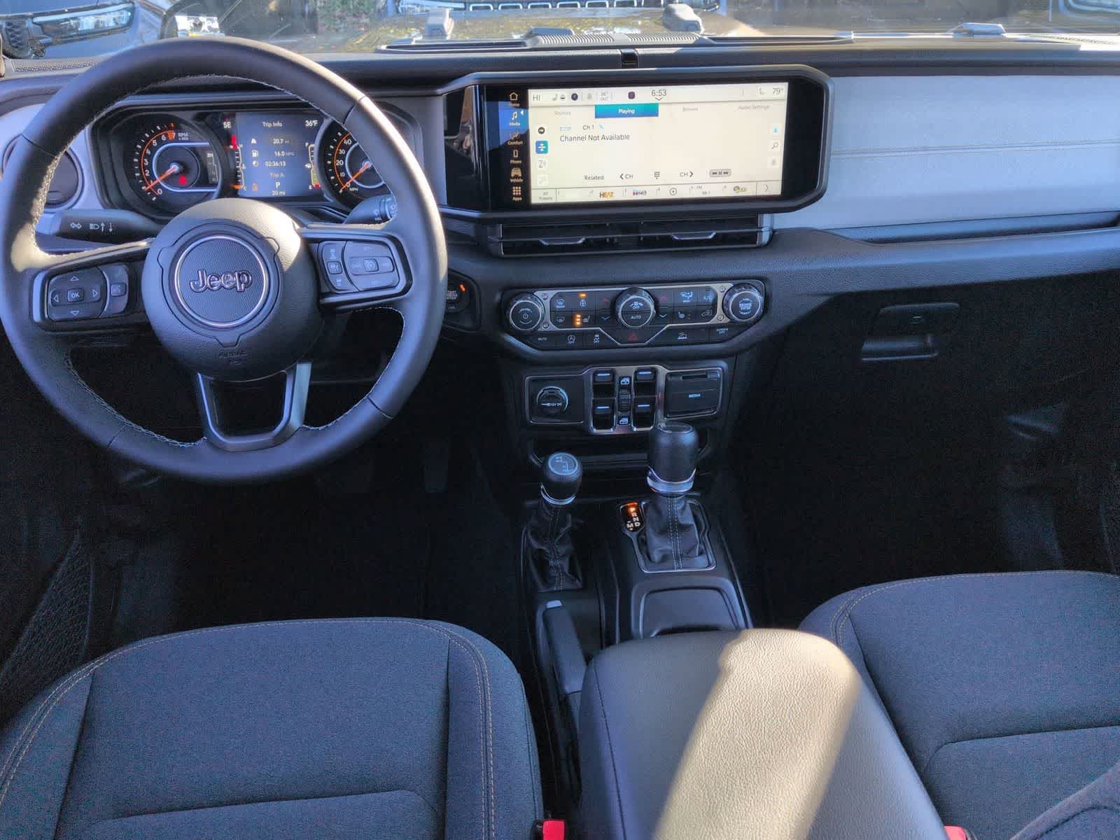 Gladiator Sport S is nicely equipped with ABS brakes, Compass, Electronic Stability Control, Illuminated entry, Low tire pressure warning, ParkView Rear Back-Up Camera, Remote keyless entry, Traction control, 110 Mph Vehicle Max Speed Calibration, 12.3 Touchscreen Display, 3.73 Rear Axle Ratio, 4-Wheel Disc Brakes, 4G LTE Wi-Fi Hot Spot, 8 Speakers, Air Conditioning, Alexa Built-in, AM/FM radio: SiriusXM with 360L, Apple CarPlay, Apple CarPlay/Android Auto, Brake assist, Connectivity - US/Canada, Delay-off headlights, Driver door bin, Driver vanity mirror, Dual front impact airbags, Dual front side impact airbags, Front anti-roll bar, Front Bucket Seats, Front Center Armrest w/Storage, Front fog lights, Front reading lights, Google Android Auto, Integrated roll-over protection, Normal Duty Suspension, Occupant sensing airbag, Outside temperature display, Overhead airbag, Panic alarm, Passenger door bin, Passenger vanity mirror, Power steering, Power windows, Radio data system, Radio: Uconnect 5 with 12.3 Display, Rear anti-roll bar, Rear reading lights, Speed control, Split folding rear seat, Steering wheel mounted audio controls, Tachometer, Telescoping steering wheel, Tilt steering wheel, Trip computer, USB Host Flip, Variably intermittent wipers, Voltmeter, and Wheels: 17 x 7.5 Black Steel Styled.