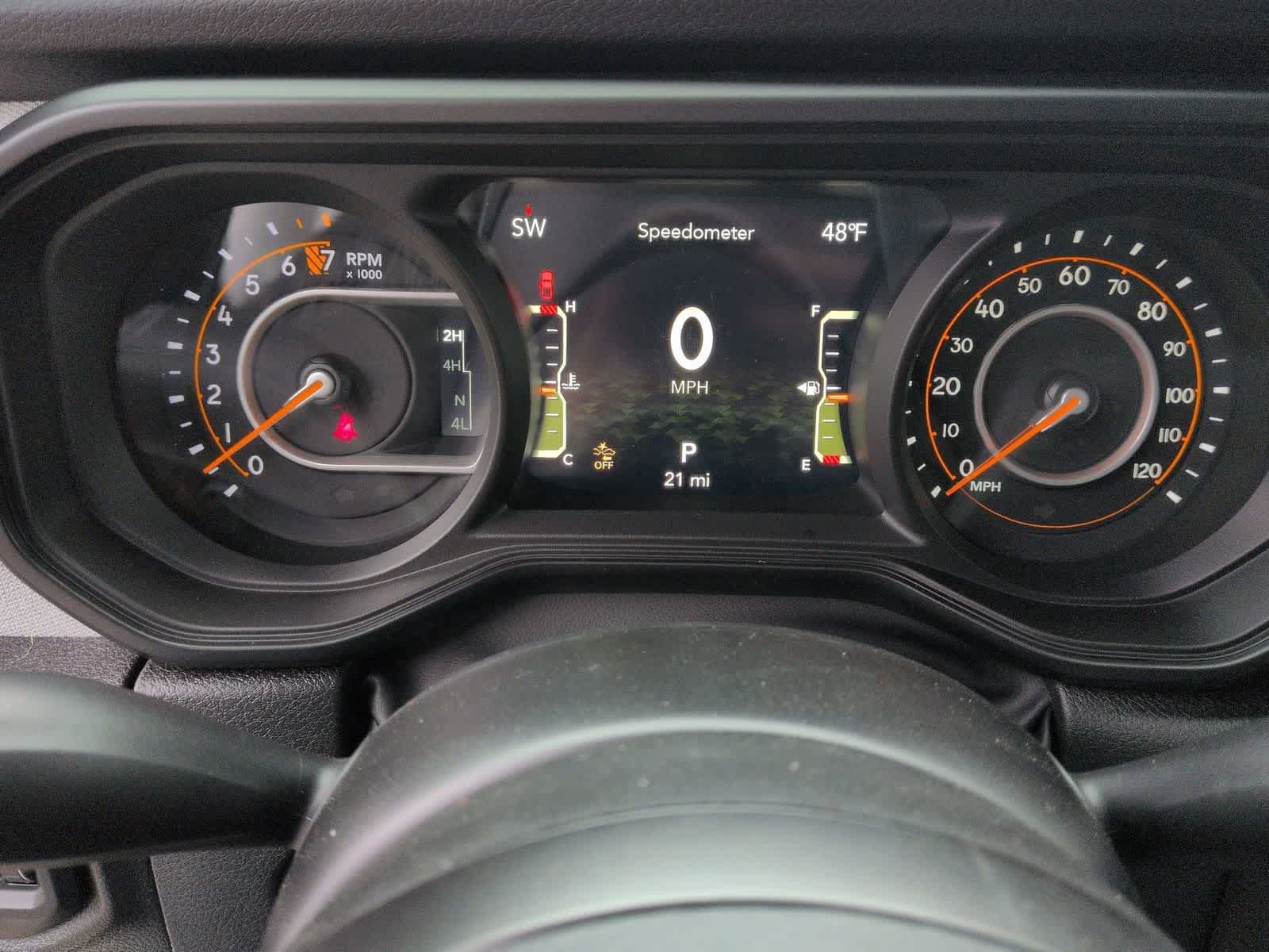 Gladiator Sport S is nicely equipped with Convenience Group (Air Conditioning with Auto Temp Control, Cluster 7.0 TFT Color Display, Corning Gorilla Glass, Daytime Running Lamp System, Emergency/Assistance Call, Front Door Locks 2-Door Passive Entry, Heated Front Seats, Heated Steering Wheel, Remote Start System, and Universal Garage Door Opener), Dark Sky Appearance Package (2-Piece Body Color Fender Flares, Mold in Color Bumper with Gloss Black, and Performance Hood), Quick Order Package 24S Sport S (Advanced Brake Assist, Automatic Headlamps, Deep Tint Sunscreen Windows, Full Speed Forward Collision Warning Plus, Normal Duty Plus Suspension, Power Heated Mirrors, Premium Wrapped Steering Wheel, Security Alarm, Sun Visors with Illuminated Vanity Mirrors, and Wheels: 17 x 7.5 Gray), 110 Mph Vehicle Max Speed Calibration, 12.3 Touchscreen Display, 3.73 Rear Axle Ratio, 4-Wheel Disc Brakes, 4G LTE Wi-Fi Hot Spot, 8 Speakers, ABS brakes, Air Conditioning, Alexa Built-in, AM/FM radio: SiriusXM with 360L, Apple CarPlay, Apple CarPlay/Android Auto, Black 3-Piece Hard Top, Brake assist, Compass, Connectivity - US/Canada, Delay-off headlights, Driver door bin, Driver vanity mirror, Dual front impact airbags, Dual front side impact airbags, Electronic Stability Control, Freedom Panel Storage Bag, Front anti-roll bar, Front Bucket Seats, Front Center Armrest w/Storage, Front fog lights, Front reading lights, Google Android Auto, Illuminated entry, Integrated roll-over protection, Low tire pressure warning, MOPAR Spray in Bedliner, Normal Duty Suspension, Occupant sensing airbag, Outside temperature display, Overhead airbag, Panic alarm, ParkView Rear Back-Up Camera, Passenger door bin, Passenger vanity mirror, Power steering, Power windows, Radio data system, Radio: Uconnect 5 with 12.3 Display, Rear anti-roll bar, Rear reading lights, Rear Sliding Window, Rear Window Defroster, Remote keyless entry, Speed control, Split folding rear seat, Steering wheel mounted audio controls, Tachometer, Telescoping steering wheel, Tilt steering wheel, Traction control, Trip computer, USB Host Flip, Variably intermittent wipers, Voltmeter, Wheels: 17 x 7.5 Black Steel Styled, and Wheels: 17 x 7.5 Machined with Black Pockets.
