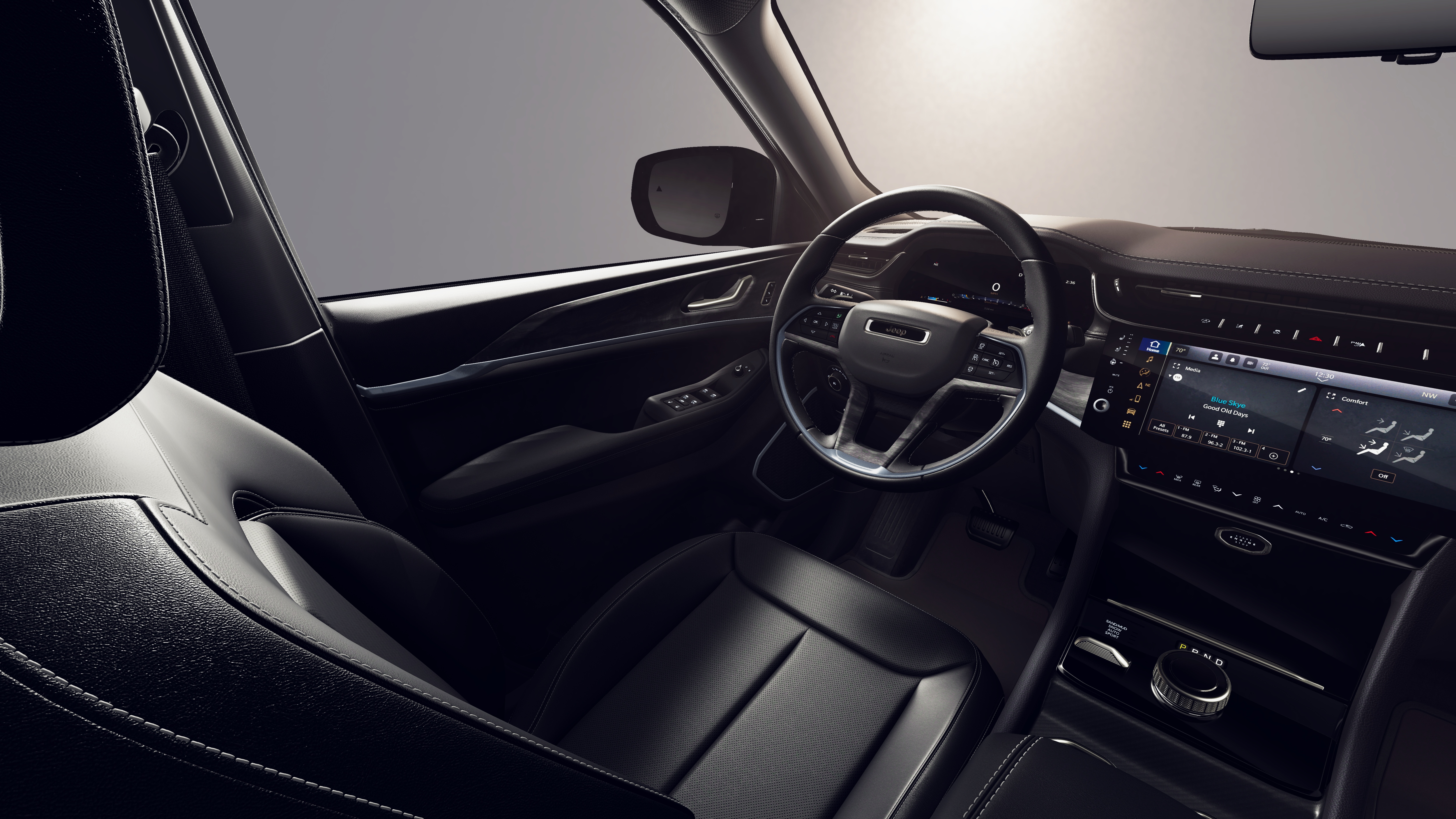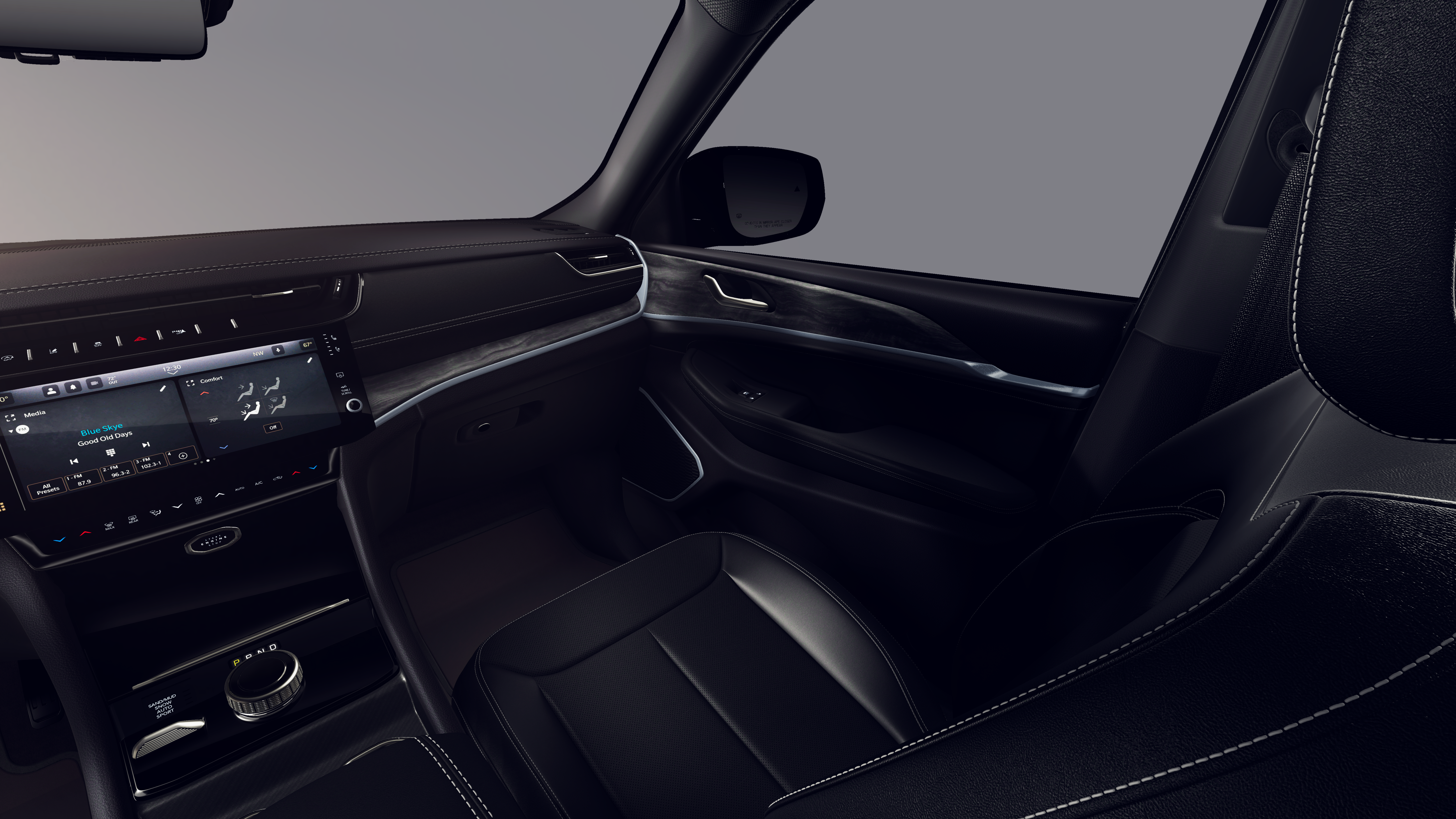 Grand Cherokee L Limited is nicely equipped with Quick Order Package 2CR Limited Reserve (Auto-Dimming Exterior Driver Mirror, Delete Limited Badge, Dual-Pane Panoramic Sunroof, Exterior Accents Dark Neutral Metallic, Gloss Black Roof Rails, Integrated Off-Road Camera, Interior Rear Facing Camera, Limited Reserve, Memory Steering Column, Nappa Leather Door Trim, Nappa Leather Seats, Painted Door Cladding, Painted Lower Front Fascia, Painted Lower Rear Fascia, Painted Lower Rocker Panel Cladding, Painted Wheel Flares, ParkSense Front/Rear Park Assist with Stop, Passive Entry - Front/Rear Doors, Liftgate, Power Tilt/Telescope Steering Column, Rain Sensitive Windshield Wipers, Rear Back Up Camera Washer, Rearview Autodim Digital Display Mirror, Side Distance Warning, Surround View Camera System, Upper Grille Texture C, Ventilated Front Seats, Wheels: 20 x 8.5 Black Painted Aluminum, and Wireless Charging Pad), 10 Speakers, 3.70 Rear Axle Ratio, 3rd row seats: split-bench, 4-Wheel Disc Brakes, 4G LTE Wi-Fi Hot Spot, ABS brakes, Active Noise Control System, Air Conditioning, Alloy wheels, AM/FM radio: SiriusXM with 360L, Anti-whiplash front head restraints, Apple CarPlay, AppLink/Apple CarPlay and Android Auto, Audio memory, Auto High-beam Headlights, Automatic temperature control, Brake assist, Bumpers: body-color, Capri Leatherette Seats, Compass, Connectivity - US/Canada, Delay-off headlights, Disassociated Touchscreen Display, Driver door bin, Driver vanity mirror, Dual front impact airbags, Dual front side impact airbags, Electronic Stability Control, Emergency communication system, For Details, Visit DriveUconnect.com, Four wheel independent suspension, Front anti-roll bar, Front Bucket Seats, Front Center Armrest w/Storage, Front dual zone A/C, Front fog lights, Front reading lights, Fully automatic headlights, Garage door transmitter, Global Telematics Box Module (TBM), Gloss Black Exterior Mirrors, Google Android Auto, GPS Antenna Input, Heated door mirrors, Heated Exterior Mirrors, Heated front seats, Heated rear seats, Heated steering wheel, Illuminated entry, Integrated Center Stack Radio, Integrated Voice Command with Bluetooth®, Knee airbag, Low tire pressure warning, Manual Fold Seatbacks, Manual Folding Exterior Mirrors, Memory seat, Navigation System, Normal Duty Suspension, Occupant sensing airbag, Outside temperature display, Overhead airbag, Overhead console, Panic alarm, ParkView Rear Back-Up Camera, Passenger door bin, Passenger vanity mirror, Power door mirrors, Power driver seat, Power Fold Seatbacks, Power Liftgate, Power passenger seat, Power steering, Power windows, Radio data system, Radio: Uconnect 5 Nav with 12.3 Display, Rear air conditioning, Rear anti-roll bar, Rear reading lights, Rear window defroster, Rear window wiper, Reclining 3rd row seat, Remote keyless entry, Security system, Speed control, Speed-Sensitive Wipers, Split folding rear seat, Spoiler, Steering wheel mounted audio controls, Tachometer, Telescoping steering wheel, Tilt steering wheel, Traction control, Trip computer, Turn signal indicator mirrors, USB Host Flip, Variably intermittent wipers, Voltmeter, and Wheels: 18 x 8.0 Polished/Painted AluminuM.