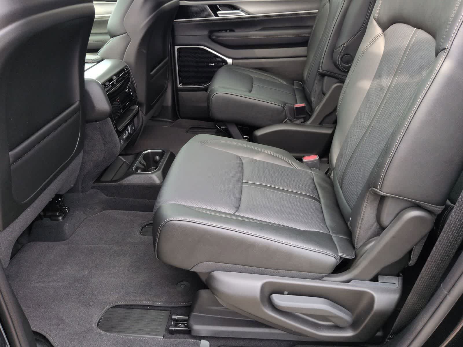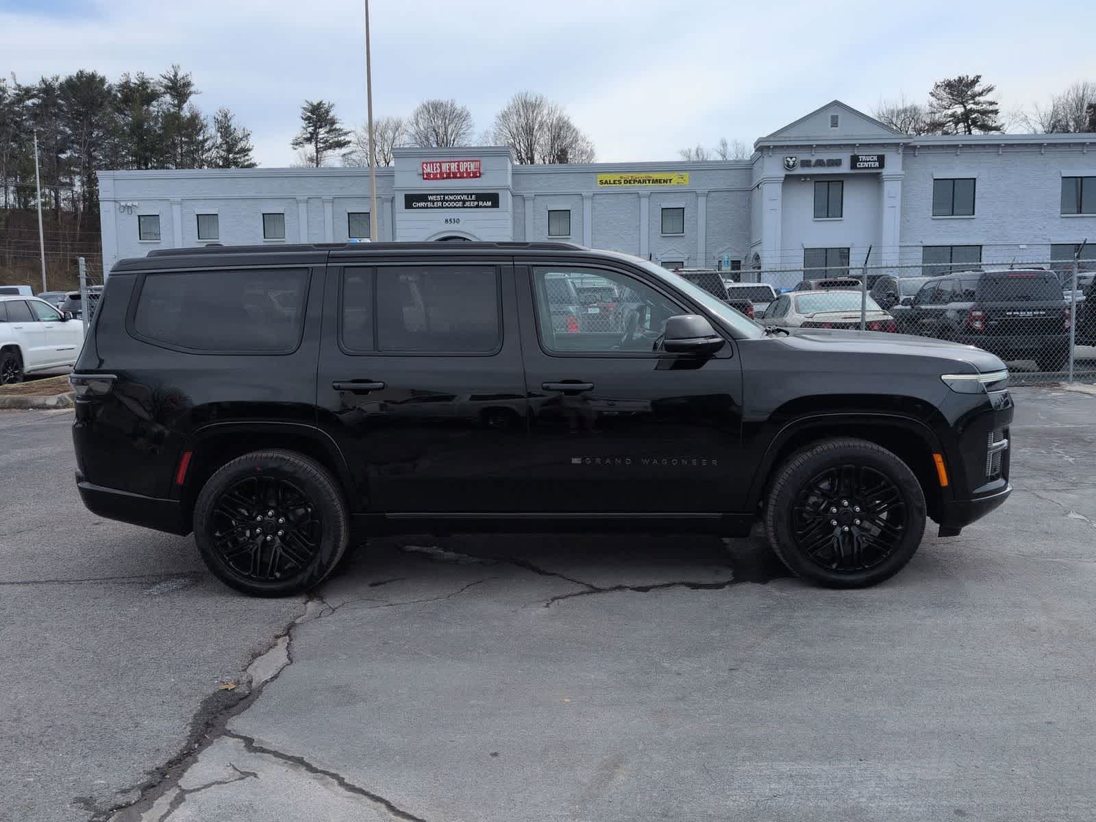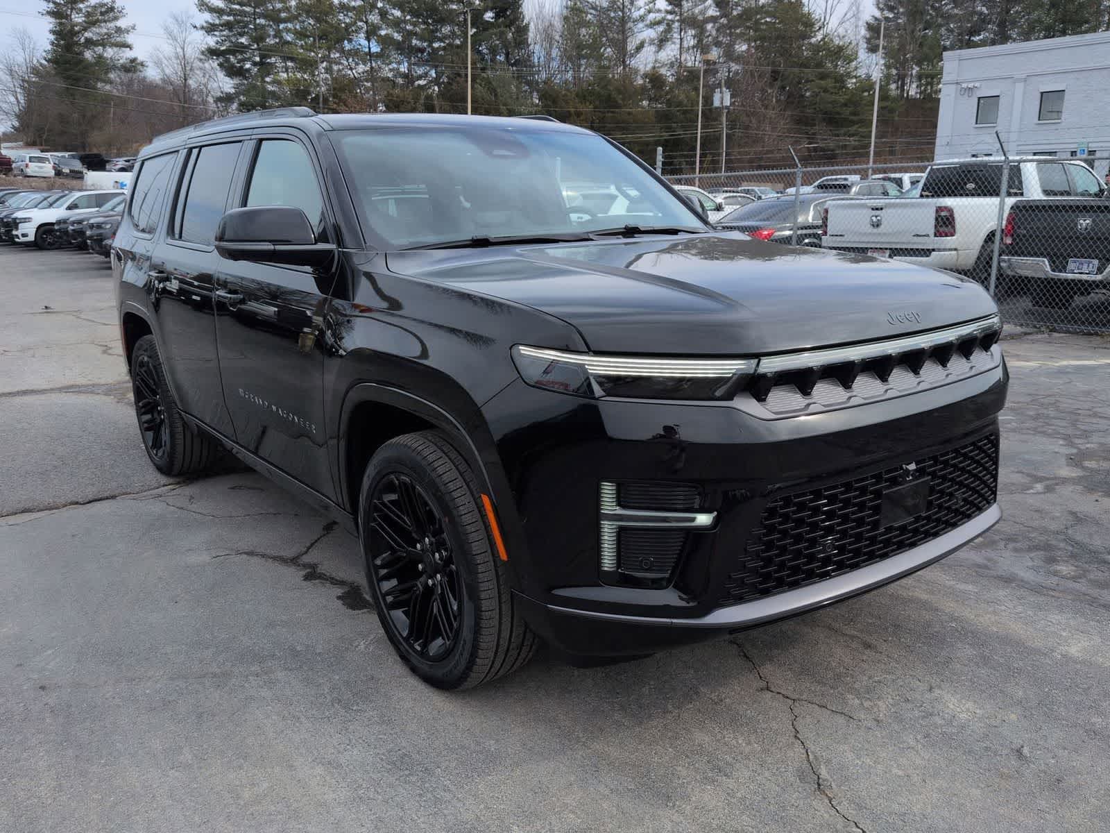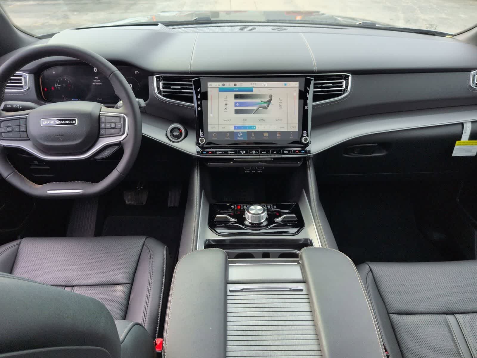 Grand Wagoneer Reserve is nicely equipped with Black Appearance Package (118 Mph Maximum Speed Calibration, Black Exterior Accents, Titanium Daylight Opening Upper, Titanium Upper Grille Applique, and Wheels: 22 x 9 Painted Gloss Black), Limited Reserve Package, Quick Order Package 29D Reserve (19 Speaker McIntosh Audio System, 2nd Row Manual Window Shades, 3 Panel Sunroof, Augmented HUD, Cargo Cover, Cluster 12 TFT Color Display, Instrument Panel, Interior Rear Facing Camera, Luxury Front and Rear Floor Mats, P and P Park and Unpark Assist with Stop System, Power Deployable Running Boards, Quadra-Lift Air Suspension, Reversible Carpet/Vinyl Cargo Mat, Semi Active Damping, Side Distance Warning, Smartphone as a Key Prep, and Surround View Camera System), 3.55 Rear Axle Ratio, 3rd row seats: bench, 4-Wheel Disc Brakes, 9 Speakers, ABS brakes, Air Conditioning, Alloy wheels, AM/FM radio: SiriusXM with 360L, Anti-whiplash front head restraints, Apple CarPlay/Android Auto, Audio memory, Auto Adjust in Reverse Exterior Mirrors, Auto High-beam Headlights, Auto-dimming door mirrors, Auto-Dimming Exterior Driver Mirror, Auto-dimming Rear-View mirror, Auto-leveling suspension, Automatic temperature control, Brake assist, Bumpers: body-color, Compass, Delay-off headlights, Driver door bin, Driver vanity mirror, Drivers Seat Mounted Armrest, Dual front impact airbags, Dual front side impact airbags, Electronic Stability Control, Emergency communication system: Jeep Connect, Exterior Mirrors Approach Lamps, Exterior Mirrors with Memory, Exterior Mirrors with Supplemental Signals, Exterior Parking Camera Rear, Four wheel independent suspension, Front anti-roll bar, Front Bucket Seats, Front Center Armrest w/Storage, Front dual zone A/C, Front fog lights, Front reading lights, Fully automatic headlights, Garage door transmitter, Heated door mirrors, Heated Exterior Mirrors, Heated front seats, Heated rear seats, Heated steering wheel, Illuminated entry, Knee airbag, Leather Trimmed Bucket Seats, Low tire pressure warning, Memory seat, Navigation System, Normal Duty Suspension, Occupant sensing airbag, Outside temperature display, Overhead airbag, Overhead console, Panic alarm, Passenger door bin, Passenger seat mounted armrest, Passenger vanity mirror, Power door mirrors, Power driver seat, Power Liftgate, Power passenger seat, Power steering, Power windows, Radio data system, Radio: Uconnect 5 Nav with 12.0 Display, Rain sensing wipers, Rear air conditioning, Rear anti-roll bar, Rear reading lights, Rear seat center armrest, Rear window defroster, Rear window wiper, Reclining 3rd row seat, Remote keyless entry, Security system, Speed control, Speed-sensing steering, Speed-Sensitive Wipers, Split folding rear seat, Steering wheel memory, Steering wheel mounted audio controls, Tachometer, Telescoping steering wheel, Tilt steering wheel, Traction control, Trip computer, Turn signal indicator mirrors, Variably intermittent wipers, Ventilated front seats, Ventilated rear seats, Voltmeter, and Wheels: 20 x 9 Aluminum Painted.
