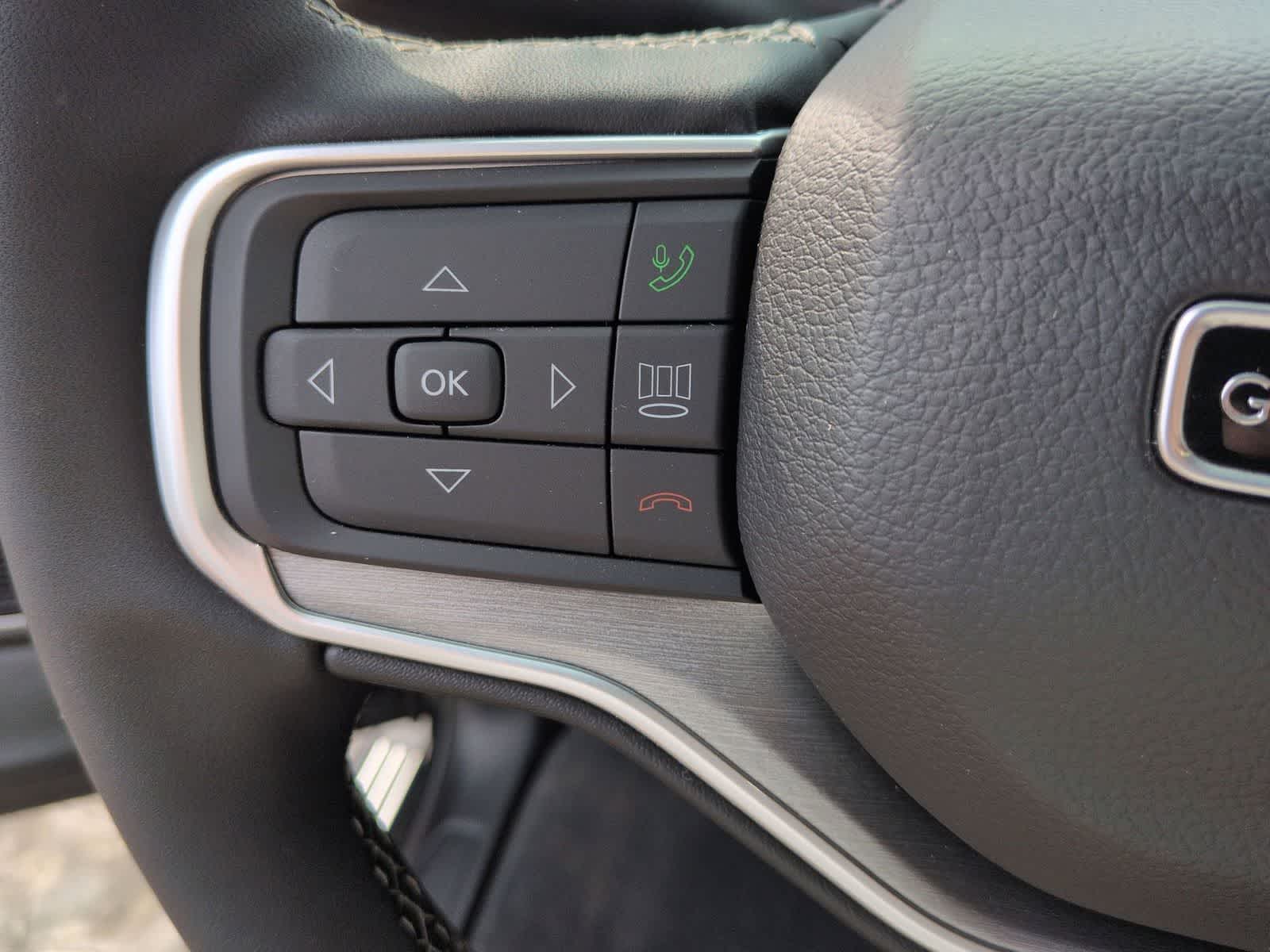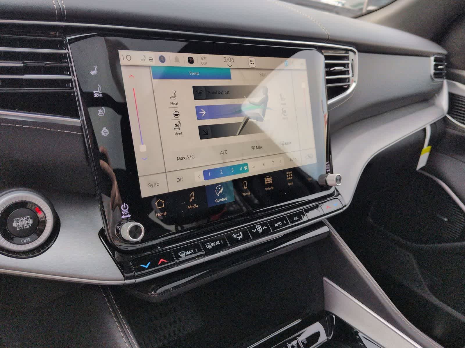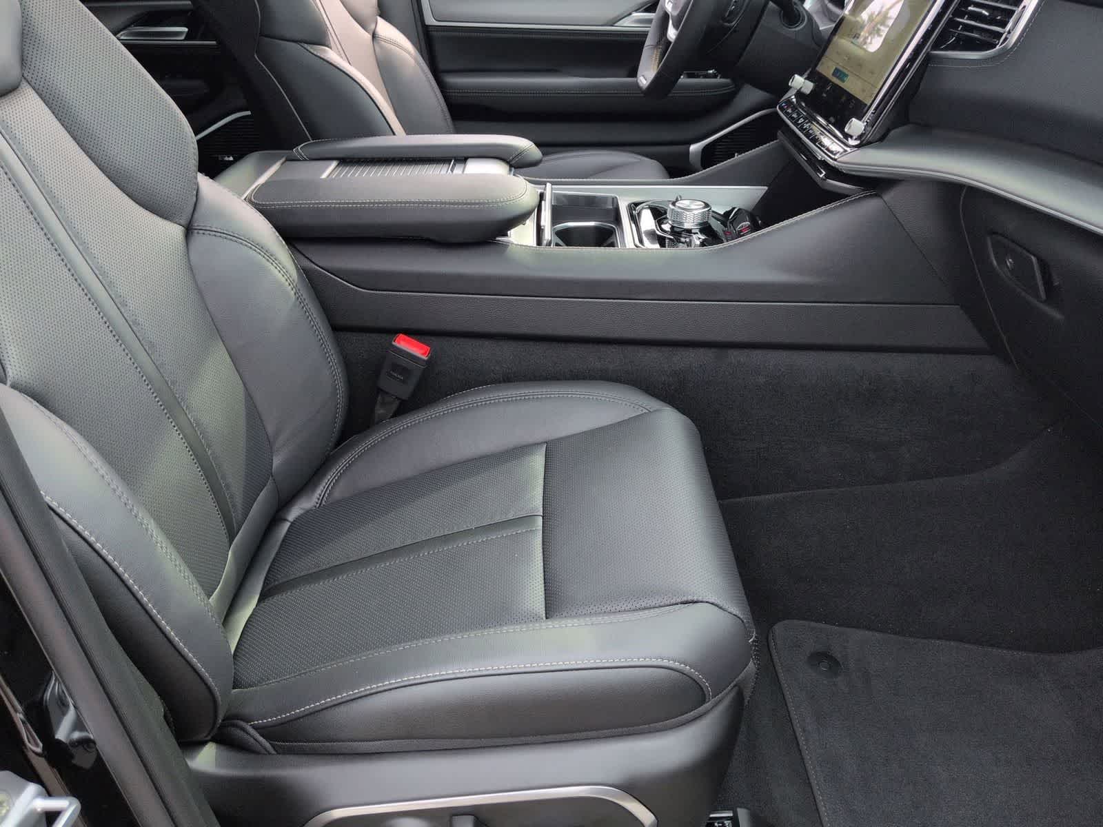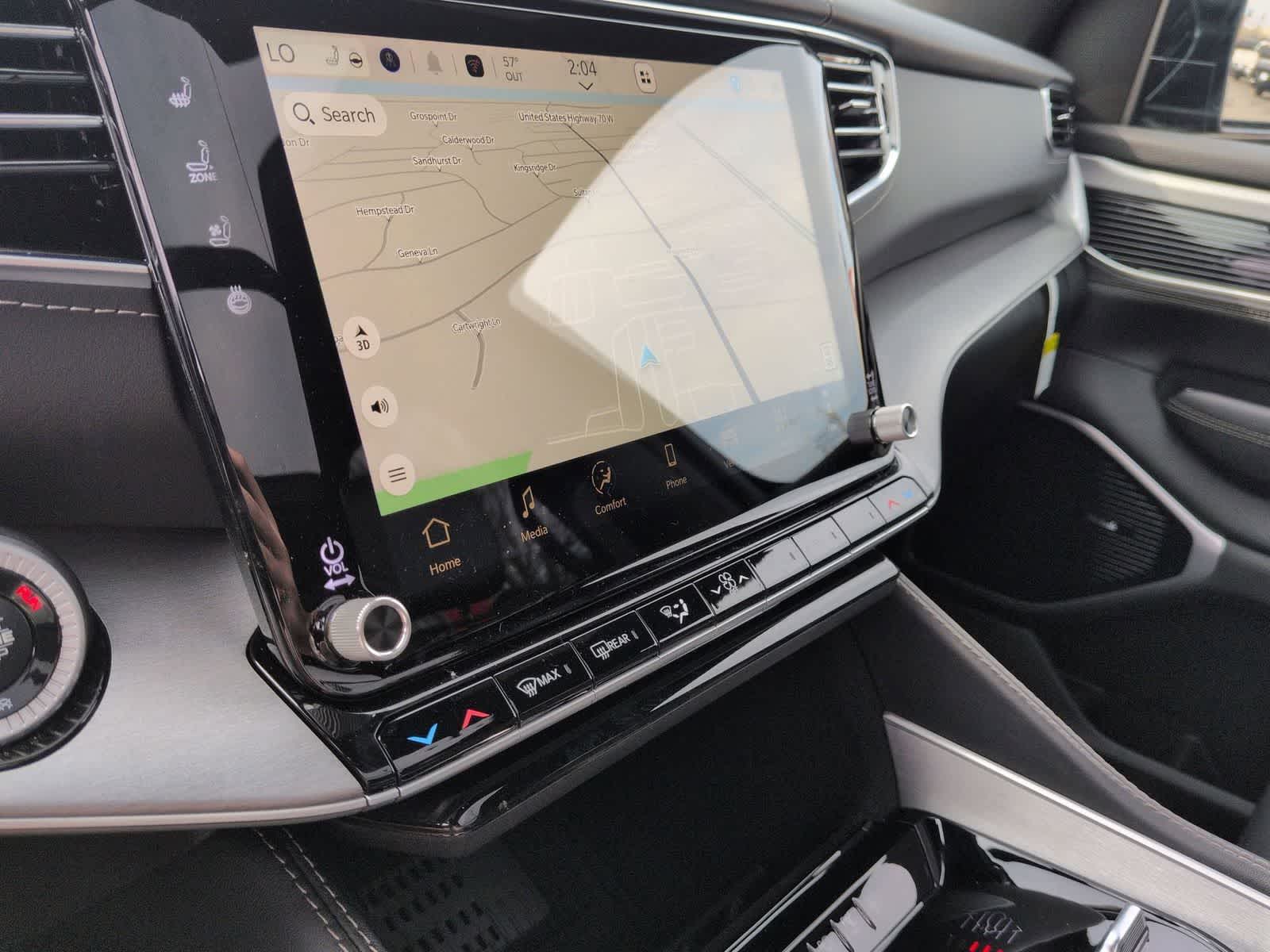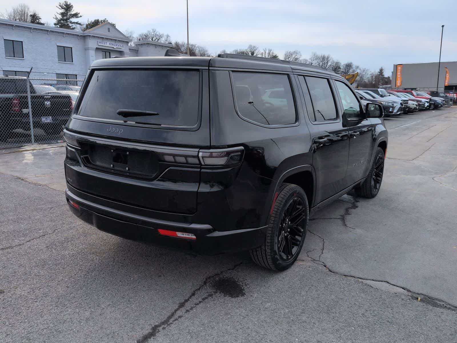 Grand Wagoneer Reserve is nicely equipped with Black Appearance Package (118 Mph Maximum Speed Calibration, Black Exterior Accents, Titanium Daylight Opening Upper, Titanium Upper Grille Applique, and Wheels: 22 x 9 Painted Gloss Black), Limited Reserve Package, Quick Order Package 29D Reserve (19 Speaker McIntosh Audio System, 2nd Row Manual Window Shades, 3 Panel Sunroof, Augmented HUD, Cargo Cover, Cluster 12 TFT Color Display, Instrument Panel, Interior Rear Facing Camera, Luxury Front and Rear Floor Mats, P and P Park and Unpark Assist with Stop System, Power Deployable Running Boards, Quadra-Lift Air Suspension, Reversible Carpet/Vinyl Cargo Mat, Semi Active Damping, Side Distance Warning, Smartphone as a Key Prep, and Surround View Camera System), 3.55 Rear Axle Ratio, 3rd row seats: bench, 4-Wheel Disc Brakes, 9 Speakers, ABS brakes, Air Conditioning, Alloy wheels, AM/FM radio: SiriusXM with 360L, Anti-whiplash front head restraints, Apple CarPlay/Android Auto, Audio memory, Auto Adjust in Reverse Exterior Mirrors, Auto High-beam Headlights, Auto-dimming door mirrors, Auto-Dimming Exterior Driver Mirror, Auto-dimming Rear-View mirror, Auto-leveling suspension, Automatic temperature control, Brake assist, Bumpers: body-color, Compass, Delay-off headlights, Driver door bin, Driver vanity mirror, Drivers Seat Mounted Armrest, Dual front impact airbags, Dual front side impact airbags, Electronic Stability Control, Emergency communication system: Jeep Connect, Exterior Mirrors Approach Lamps, Exterior Mirrors with Memory, Exterior Mirrors with Supplemental Signals, Exterior Parking Camera Rear, Four wheel independent suspension, Front anti-roll bar, Front Bucket Seats, Front Center Armrest w/Storage, Front dual zone A/C, Front fog lights, Front reading lights, Fully automatic headlights, Garage door transmitter, Heated door mirrors, Heated Exterior Mirrors, Heated front seats, Heated rear seats, Heated steering wheel, Illuminated entry, Knee airbag, Leather Trimmed Bucket Seats, Low tire pressure warning, Memory seat, Navigation System, Normal Duty Suspension, Occupant sensing airbag, Outside temperature display, Overhead airbag, Overhead console, Panic alarm, Passenger door bin, Passenger seat mounted armrest, Passenger vanity mirror, Power door mirrors, Power driver seat, Power Liftgate, Power passenger seat, Power steering, Power windows, Radio data system, Radio: Uconnect 5 Nav with 12.0 Display, Rain sensing wipers, Rear air conditioning, Rear anti-roll bar, Rear reading lights, Rear seat center armrest, Rear window defroster, Rear window wiper, Reclining 3rd row seat, Remote keyless entry, Security system, Speed control, Speed-sensing steering, Speed-Sensitive Wipers, Split folding rear seat, Steering wheel memory, Steering wheel mounted audio controls, Tachometer, Telescoping steering wheel, Tilt steering wheel, Traction control, Trip computer, Turn signal indicator mirrors, Variably intermittent wipers, Ventilated front seats, Ventilated rear seats, Voltmeter, and Wheels: 20 x 9 Aluminum Painted.