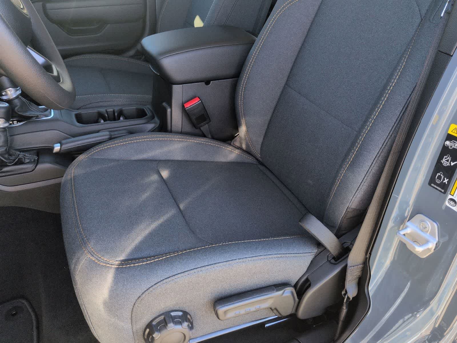 Wrangler Sport is nicely equipped with Quick Order Package 24B Sport, 12.3 Touchscreen Display, 3.45 Overall Top Gear Ratio, 4-Wheel Disc Brakes, 4G LTE Wi-Fi Hot Spot, 8 Speakers, ABS brakes, Air Conditioning, AM/FM radio: SiriusXM with 360L, Apple CarPlay, Apple CarPlay/Android Auto, Aux Battery, Black 3-Piece Hard Top, Brake assist, Compass, Connectivity - US/Canada, Delay-off headlights, Driver door bin, Driver vanity mirror, Dual front impact airbags, Dual front side impact airbags, Electronic Stability Control, For More Info, Call 800-643-2112, Freedom Panel Storage Bag, Front anti-roll bar, Front Bucket Seats, Front Center Armrest w/Storage, Front fog lights, Front reading lights, Google Android Auto, Illuminated entry, Integrated Center Stack Radio, Integrated roll-over protection, Low tire pressure warning, No Soft Top, Non-Lock Fuel Cap Without Discriminator, Normal Duty Suspension, Occupant sensing airbag, Outside temperature display, Overhead airbag, Panic alarm, ParkView Rear Back-Up Camera, Passenger door bin, Passenger vanity mirror, Power steering, Power windows, Radio data system, Radio: Uconnect 5 with 12.3 Display, Rear anti-roll bar, Rear reading lights, Rear Window Defroster, Rear Window Wiper/Washer, Remote keyless entry, SiriusXM Radio Service, SiriusXM with 360L, Speed control, Split folding rear seat, Steering wheel mounted audio controls, Stop-Start Dual Battery System, Tachometer, Telescoping steering wheel, Tilt steering wheel, Traction control, Trip computer, Variably intermittent wipers, and Wheels: 17 x 7.5 Black Steel Styled.
