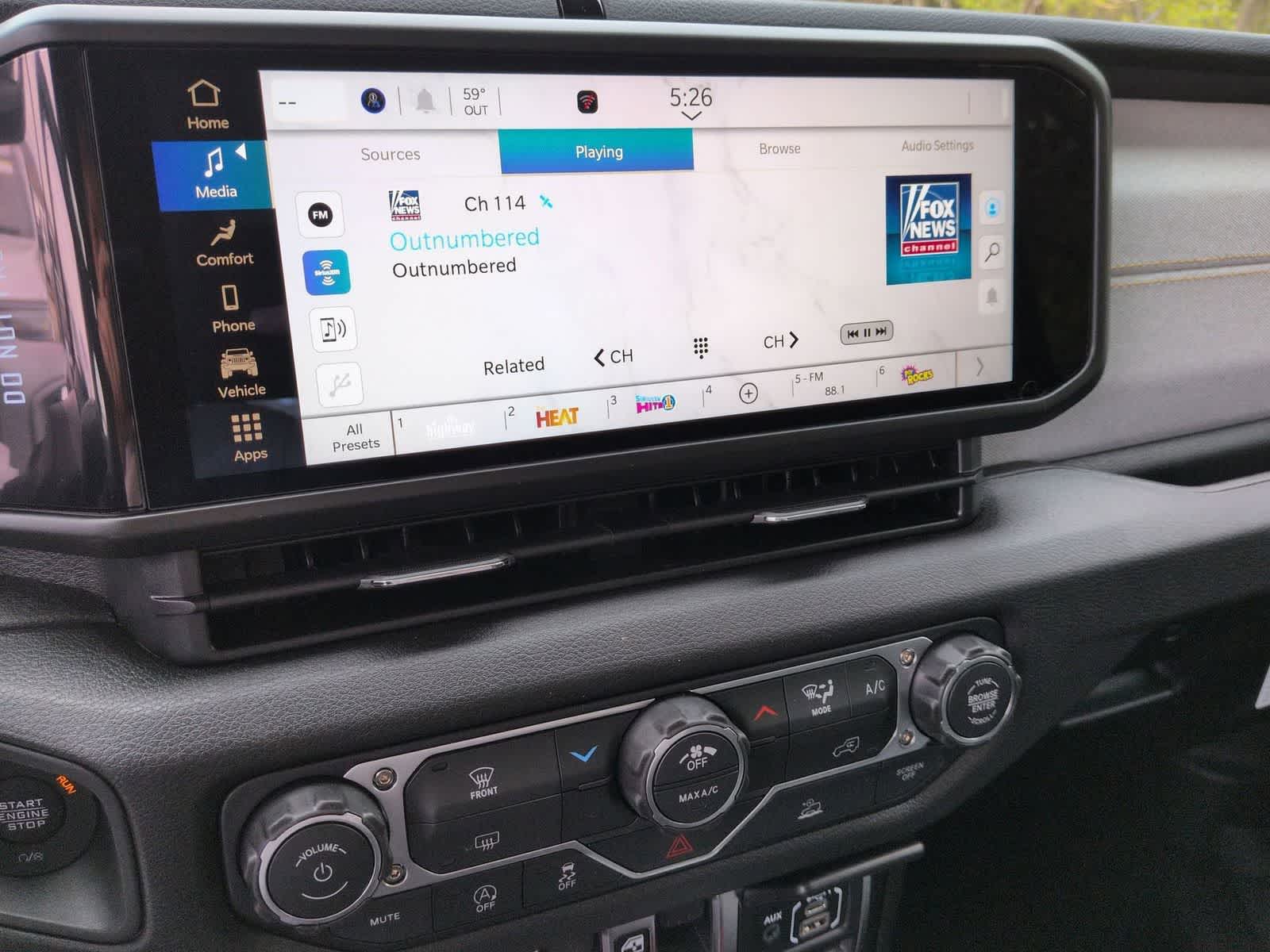 Wrangler Sport is nicely equipped with Quick Order Package 24B Sport, 12.3 Touchscreen Display, 3.45 Overall Top Gear Ratio, 4-Wheel Disc Brakes, 4G LTE Wi-Fi Hot Spot, 8 Speakers, ABS brakes, Air Conditioning, AM/FM radio: SiriusXM with 360L, Apple CarPlay, Apple CarPlay/Android Auto, Aux Battery, Black 3-Piece Hard Top, Brake assist, Compass, Connectivity - US/Canada, Delay-off headlights, Driver door bin, Driver vanity mirror, Dual front impact airbags, Dual front side impact airbags, Electronic Stability Control, For More Info, Call 800-643-2112, Freedom Panel Storage Bag, Front anti-roll bar, Front Bucket Seats, Front Center Armrest w/Storage, Front fog lights, Front reading lights, Google Android Auto, Illuminated entry, Integrated Center Stack Radio, Integrated roll-over protection, Low tire pressure warning, No Soft Top, Non-Lock Fuel Cap Without Discriminator, Normal Duty Suspension, Occupant sensing airbag, Outside temperature display, Overhead airbag, Panic alarm, ParkView Rear Back-Up Camera, Passenger door bin, Passenger vanity mirror, Power steering, Power windows, Radio data system, Radio: Uconnect 5 with 12.3 Display, Rear anti-roll bar, Rear reading lights, Rear Window Defroster, Rear Window Wiper/Washer, Remote keyless entry, SiriusXM Radio Service, SiriusXM with 360L, Speed control, Split folding rear seat, Steering wheel mounted audio controls, Stop-Start Dual Battery System, Tachometer, Telescoping steering wheel, Tilt steering wheel, Traction control, Trip computer, Variably intermittent wipers, and Wheels: 17 x 7.5 Black Steel Styled.