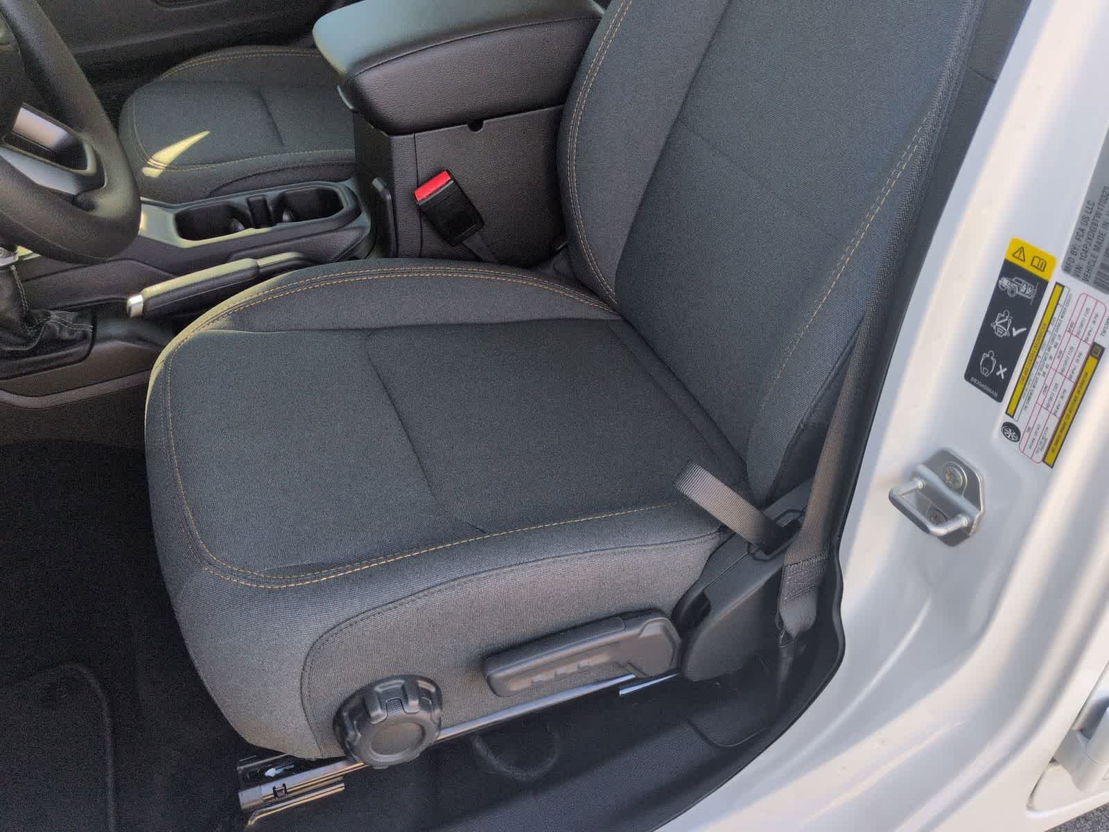 Wrangler Sport is nicely equipped with Quick Order Package 24B Sport, 12.3 Touchscreen Display, 3.45 Overall Top Gear Ratio, 4-Wheel Disc Brakes, 4G LTE Wi-Fi Hot Spot, 8 Speakers, ABS brakes, Air Conditioning, AM/FM radio: SiriusXM with 360L, Apple CarPlay, Apple CarPlay/Android Auto, Aux Battery, Black 3-Piece Hard Top, Brake assist, Compass, Connectivity - US/Canada, Delay-off headlights, Driver door bin, Driver vanity mirror, Dual front impact airbags, Dual front side impact airbags, Electronic Stability Control, For More Info, Call 800-643-2112, Freedom Panel Storage Bag, Front anti-roll bar, Front Bucket Seats, Front Center Armrest w/Storage, Front fog lights, Front reading lights, Google Android Auto, Illuminated entry, Integrated Center Stack Radio, Integrated roll-over protection, Low tire pressure warning, No Soft Top, Non-Lock Fuel Cap Without Discriminator, Normal Duty Suspension, Occupant sensing airbag, Outside temperature display, Overhead airbag, Panic alarm, ParkView Rear Back-Up Camera, Passenger door bin, Passenger vanity mirror, Power steering, Power windows, Radio data system, Radio: Uconnect 5 with 12.3 Display, Rear anti-roll bar, Rear reading lights, Rear Window Defroster, Rear Window Wiper/Washer, Remote keyless entry, SiriusXM Radio Service, SiriusXM with 360L, Speed control, Split folding rear seat, Steering wheel mounted audio controls, Stop-Start Dual Battery System, Tachometer, Telescoping steering wheel, Tilt steering wheel, Traction control, Trip computer, Variably intermittent wipers, and Wheels: 17 x 7.5 Black Steel Styled.
