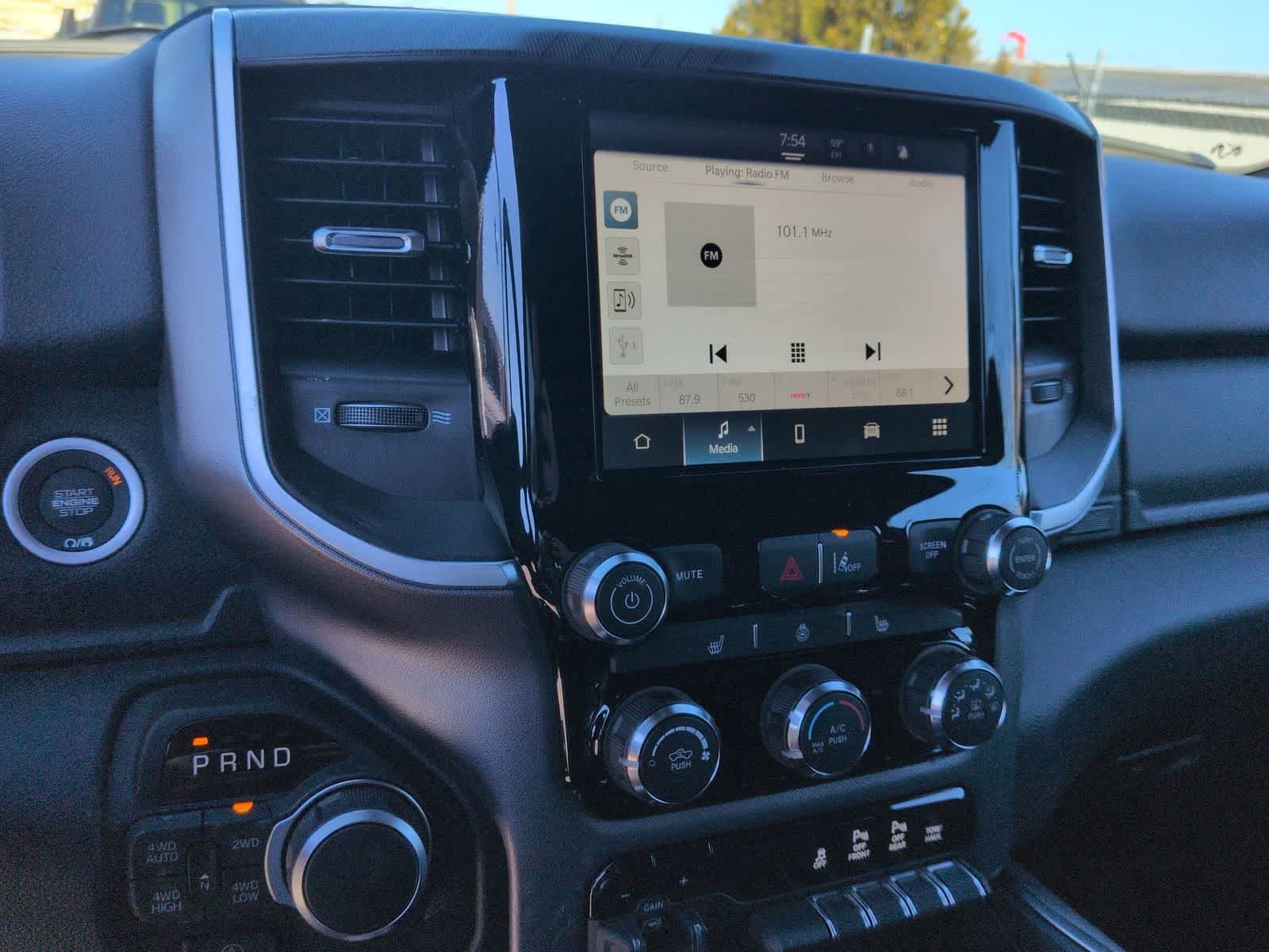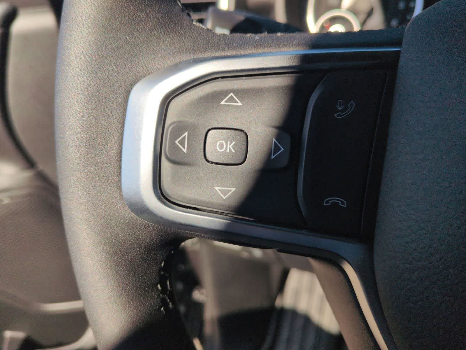1500 Big Horn/Lone Star is nicely equipped with Bed Utility Group (Exterior 115V AC Outlet, MOPAR 4 Adjustable Cargo Tie-Down Hooks, MOPAR Spray in Bedliner, and Pick-Up Box Lighting), Big Horn Level 1 Equipment Group (115V Auxiliary Power Outlet, 2nd Row in Floor Storage Bins, 3 Rear Seat Head Restraints, 4 Way Front Headrests, 400W Inverter, Auto Power-Folding Mirrors, Auto-Dimming Exterior Driver Mirror, Auto-Dimming Rear-View Mirror, Black Exterior Mirrors, Black Premium Power Mirrors, Body Color Fender Flares, Bucket Seats, Center Console Parts Module, Convex Wide-Angle Exterior Mirror Insert, Deluxe Cloth Bucket Seats, Exterior Mirrors Courtesy Lamps, Exterior Mirrors with Heating Element, Exterior Mirrors with Supplemental Signals, Front Seat Back Map Pockets, Full Length Floor Console, Glove Box Lamp, Heated Front Seats, Heated Steering Wheel, Leather Wrapped Steering Wheel, Manual Adjust 4-Way Front Passenger Seat, Power 2-Way Driver Lumbar Adjust, Power Adjust 8-Way Driver Seat, Power Adjustable Pedals, Rear 60/40 Folding Seat, Rear Center Armrest, Rear Dome with on/Off Switch Lamp, Rear Power Sliding Window, Rear Window Defroster, SiriusXM Radio Service, SiriusXM Satellite Radio, Steering Wheel Mounted Audio Controls, Sun Visors with Illuminated Vanity Mirrors, and Universal Garage Door Opener), Night Edition (Accent Color Door Handles, Accent Color Premium Power Mirrors, Accent Color Tailgate Handle, Anti-Spin Differential Rear Axle, Black Exterior Truck Badging, Black Headlamp Bezels, Black Interior Accents, Black Painted Exterior Mirrors Caps, Black Tail Lamp Bezels, Body Color Front Bumper, Body Color Rear Bumper with Step Pads, Dual Exhaust with Black Tips, Grille Black Surround Black Mesh, RAM Grille Badge - Black, and Wheels: 20 x 9.0 Aluminum Painted Clad), Quick Order Package 27Z Big Horn, 4-Wheel Disc Brakes, 48V Belt Starter Generator, 4G LTE Wi-Fi Hot Spot, 6 Speakers, ABS brakes, Air Conditioning, Alloy wheels, AM/FM radio, Apple CarPlay, Apple CarPlay/Android Auto, Auto High-beam Headlights, Brake assist, Bumpers: chrome, Cloth Bucket Seats, Compass, Connectivity - US/Canada, Delay-off headlights, Driver door bin, Dual front impact airbags, Dual front side impact airbags, Electronic Stability Control, Front anti-roll bar, Front Bucket Seats, Front Center Armrest w/Storage, Front fog lights, Front reading lights, Front wheel independent suspension, Fully automatic headlights, Global Telematics Box Module, Google Android Auto, GPS Antenna Input, Heated door mirrors, Illuminated entry, Integrated Center Stack Radio, Integrated Voice Command with Bluetooth®, Low tire pressure warning, Manual Adjust 4-Way Driver Seat, Manual Folding Exterior Mirrors, Mopar Black Tubular Side Steps, MOPAR Front and Rear Rubber Floor Mats, Occupant sensing airbag, Outside temperature display, Overhead airbag, Overhead console, Panic alarm, ParkView Rear Back-Up Camera, Passenger door bin, Passenger vanity mirror, Power door mirrors, Power steering, Power windows, Radio data system, Radio: Uconnect 5 W with 8.4 Display, RAM Grille Badge - Chrome, Rear anti-roll bar, Rear step bumper, Remote keyless entry, Speed control, Supplier Part Tracking (J-1), Tachometer, Telescoping steering wheel, Tilt steering wheel, Traction control, Trailer Brake Control, Trip computer, USB Host Flip, Variably intermittent wipers, and Voltmeter.