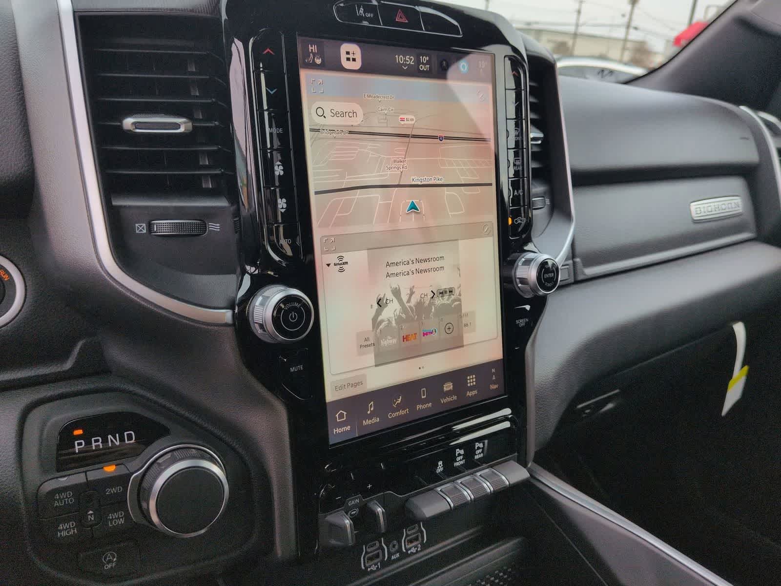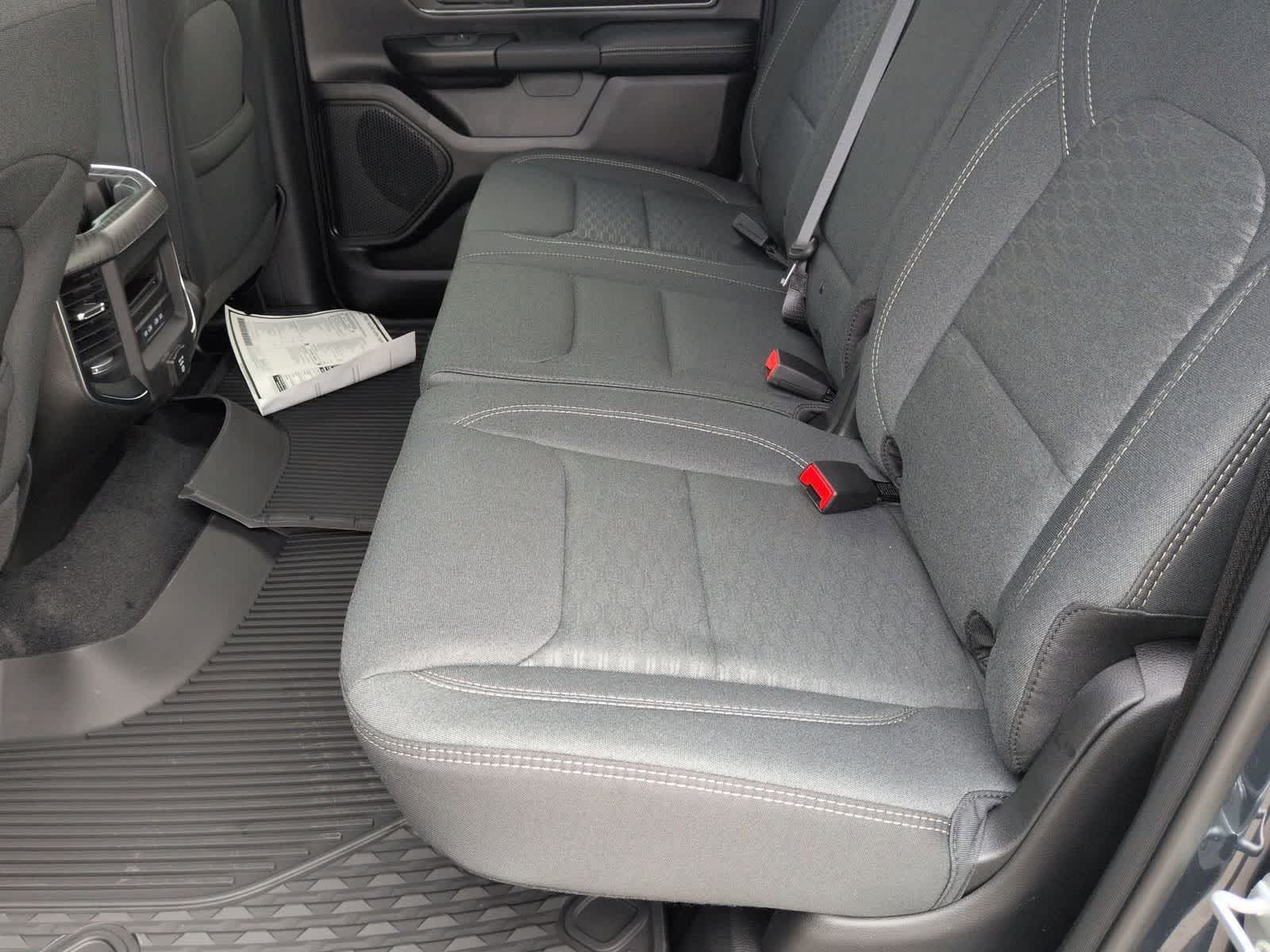 1500 Big Horn/Lone Star is nicely equipped with Bed Utility Group (Exterior 115V AC Outlet, MOPAR 4 Adjustable Cargo Tie-Down Hooks, MOPAR Spray in Bedliner, and Pick-Up Box Lighting), Big Horn Level 2 Equipment Group (115V Auxiliary Power Outlet, 115V Auxiliary Rear Power Outlet, 12 Touchscreen Display, 2nd Row in Floor Storage Bins, 3 Rear Seat Head Restraints, 4 Way Front Headrests, 400W Inverter, 4G LTE Wi-Fi Hot Spot, 9 Amplified Speakers with Subwoofer, Air Conditioning ATC with Dual Zone Control, Apple CarPlay, Auto Power-Folding Mirrors, Auto-Dimming Exterior Driver Mirror, Auto-Dimming Rear-View Mirror, Black Exterior Mirrors, Black Premium Power Mirrors, Body Color Fender Flares, Bucket Seats, Center Console Parts Module, Cluster 7.0 TFT Color Display, Configurable Drive Mode, Connected Travel and Traffic Services, Connectivity - US/Canada, Convex Wide-Angle Exterior Mirror Insert, Deluxe Cloth Bucket Seats, Disassociated Touchscreen Display, Exterior Mirrors Courtesy Lamps, Exterior Mirrors with Heating Element, Exterior Mirrors with Supplemental Signals, Front Seat Back Map Pockets, Full Length Floor Console, Global Telematics Box Module, Glove Box Lamp, Google Android Auto, GPS Antenna Input, GPS Navigation, HD Radio, Heated Front Seats, Heated Steering Wheel, Integrated Center Stack Radio, Integrated Voice Command with Bluetooth®, Leather Wrapped Steering Wheel, LED Dome Lamp with on/Off Switch, LED Footwell Lighting, Manual Adjust 4-Way Front Passenger Seat, Media Hub with 2 Charge Only USBs, Overhead LED Lamps, Power 2-Way Driver Lumbar Adjust, Power Adjust 8-Way Driver Seat, Power Adjustable Pedals, Premium Overhead Console, Radio: Uconnect 5 Navigation with 12.0 Display, Rear 60/40 Folding Seat, Rear Center Armrest, Rear Power Sliding Window, Rear Window Defroster, Remote Tailgate Release, Security Alarm, SiriusXM Radio Service, SiriusXM with 360L, Steering Wheel Mounted Audio Controls, Sun Visors with Illuminated Vanity Mirrors, Universal Garage Door Opener, and USB Host Flip), Night Edition (Accent Color Door Handles, Accent Color Premium Power Mirrors, Accent Color Tailgate Handle, Anti-Spin Differential Rear Axle, Black Exterior Truck Badging, Black Headlamp Bezels, Black Interior Accents, Black Painted Exterior Mirrors Caps, Black Tail Lamp Bezels, Body Color Front Bumper, Body Color Rear Bumper with Step Pads, Dual Exhaust with Black Tips, Grille Black Surround Black Mesh, RAM Grille Badge - Black, and Wheels: 20 x 9.0 Aluminum Painted Clad), Quick Order Package 27Z Big Horn, 4-Wheel Disc Brakes, 48V Belt Starter Generator, 6 Speakers, ABS brakes, Air Conditioning, Alloy wheels, AM/FM radio, Apple CarPlay/Android Auto, Auto High-beam Headlights, Brake assist, Bumpers: chrome, Cloth Bucket Seats, Compass, Delay-off headlights, Driver door bin, Dual front impact airbags, Dual front side impact airbags, Electronic Stability Control, Front anti-roll bar, Front Bucket Seats, Front Center Armrest w/Storage, Front fog lights, Front reading lights, Front wheel independent suspension, Fully automatic headlights, Heated door mirrors, Illuminated entry, Low tire pressure warning, Manual Adjust 4-Way Driver Seat, Manual Folding Exterior Mirrors, Mopar Black Tubular Side Steps, MOPAR Front and Rear Rubber Floor Mats, Occupant sensing airbag, Outside temperature display, Overhead airbag, Overhead console, Panic alarm, ParkView Rear Back-Up Camera, Passenger door bin, Passenger