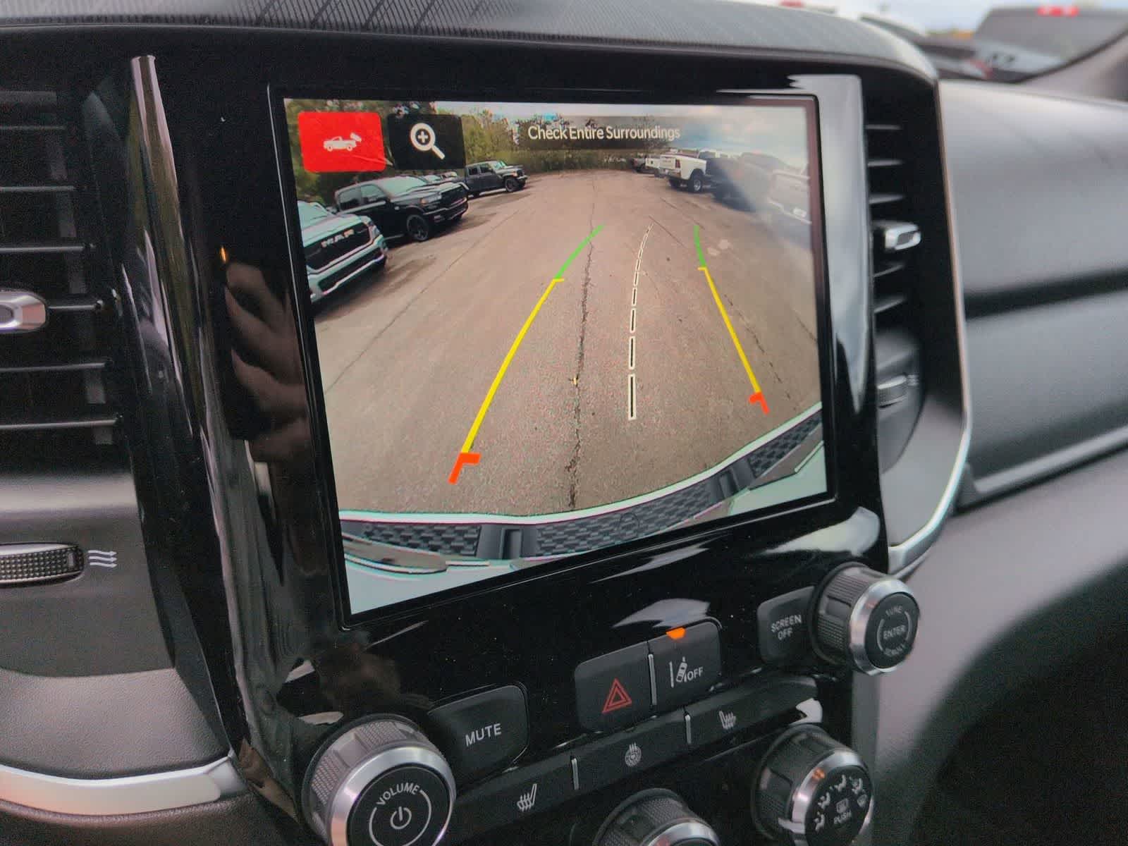 1500 Big Horn/Lone Star is nicely equipped with Big Horn Level 1 Equipment Group (115V Auxiliary Power Outlet, 2nd Row in Floor Storage Bins, 3 Rear Seat Head Restraints, 4 Way Front Headrests, 400W Inverter, Auto Power-Folding Mirrors, Auto-Dimming Exterior Driver Mirror, Auto-Dimming Rear-View Mirror, Black Exterior Mirrors, Black Premium Power Mirrors, Body Color Fender Flares, Bucket Seats, Center Console Parts Module, Convex Wide-Angle Exterior Mirror Insert, Deluxe Cloth Bucket Seats, Exterior Mirrors Courtesy Lamps, Exterior Mirrors with Heating Element, Exterior Mirrors with Supplemental Signals, Front Seat Back Map Pockets, Full Length Floor Console, Glove Box Lamp, Heated Front Seats, Heated Steering Wheel, Leather Wrapped Steering Wheel, Manual Adjust 4-Way Front Passenger Seat, Power 2-Way Driver Lumbar Adjust, Power Adjust 8-Way Driver Seat, Power Adjustable Pedals, Rear 60/40 Folding Seat, Rear Center Armrest, Rear Dome with on/Off Switch Lamp, Rear Power Sliding Window, Rear Window Defroster, SiriusXM Radio Service, SiriusXM Satellite Radio, Steering Wheel Mounted Audio Controls, Sun Visors with Illuminated Vanity Mirrors, and Universal Garage Door Opener), Quick Order Package 27Z Big Horn, Sport Appearance Package (Black Interior Accents, Body Color Door Handles, Body Color Front Bumper, Body Color Rear Bumper with Step Pads, Body Color Tailgate Handle, Grille Surround 1 Body Color Texture 1 Black, and RAM Grille Badge - Chrome), 33 Gallon Fuel Tank, 4-Wheel Disc Brakes, 48V Belt Starter Generator, 4G LTE Wi-Fi Hot Spot, 6 Speakers, ABS brakes, Air Conditioning, Alloy wheels, AM/FM radio, Apple CarPlay, Apple CarPlay/Android Auto, Auto High-beam Headlights, Brake assist, Bumpers: chrome, Cloth Bucket Seats, Compass, Connectivity - US/Canada, Delay-off headlights, Driver door bin, Dual front impact airbags, Dual front side impact airbags, Electronic Stability Control, Front anti-roll bar, Front Bucket Seats, Front Center Armrest w/Storage, Front fog lights, Front reading lights, Front wheel independent suspension, Fully automatic headlights, Global Telematics Box Module, Google Android Auto, GPS Antenna Input, Heated door mirrors, Illuminated entry, Integrated Center Stack Radio, Integrated Voice Command with Bluetooth®, Low tire pressure warning, Manual Adjust 4-Way Driver Seat, Manual Folding Exterior Mirrors, MOPAR Front and Rear Rubber Floor Mats, Occupant sensing airbag, Outside temperature display, Overhead airbag, Overhead console, Panic alarm, ParkView Rear Back-Up Camera, Passenger door bin, Passenger vanity mirror, Power door mirrors, Power steering, Power windows, Radio data system, Radio: Uconnect 5 W with 8.4 Display, Rear anti-roll bar, Rear step bumper, Rear Wheelhouse Liners, Remote keyless entry, Speed control, Supplier Part Tracking (J-1), Tachometer, Telescoping steering wheel, Tilt steering wheel, Traction control, Trailer Brake Control, Trip computer, USB Host Flip, Variably intermittent wipers, Voltmeter, Wheel to Wheel Side Steps, and Wheels: 20 x 9 Aluminum Chrome Clad.