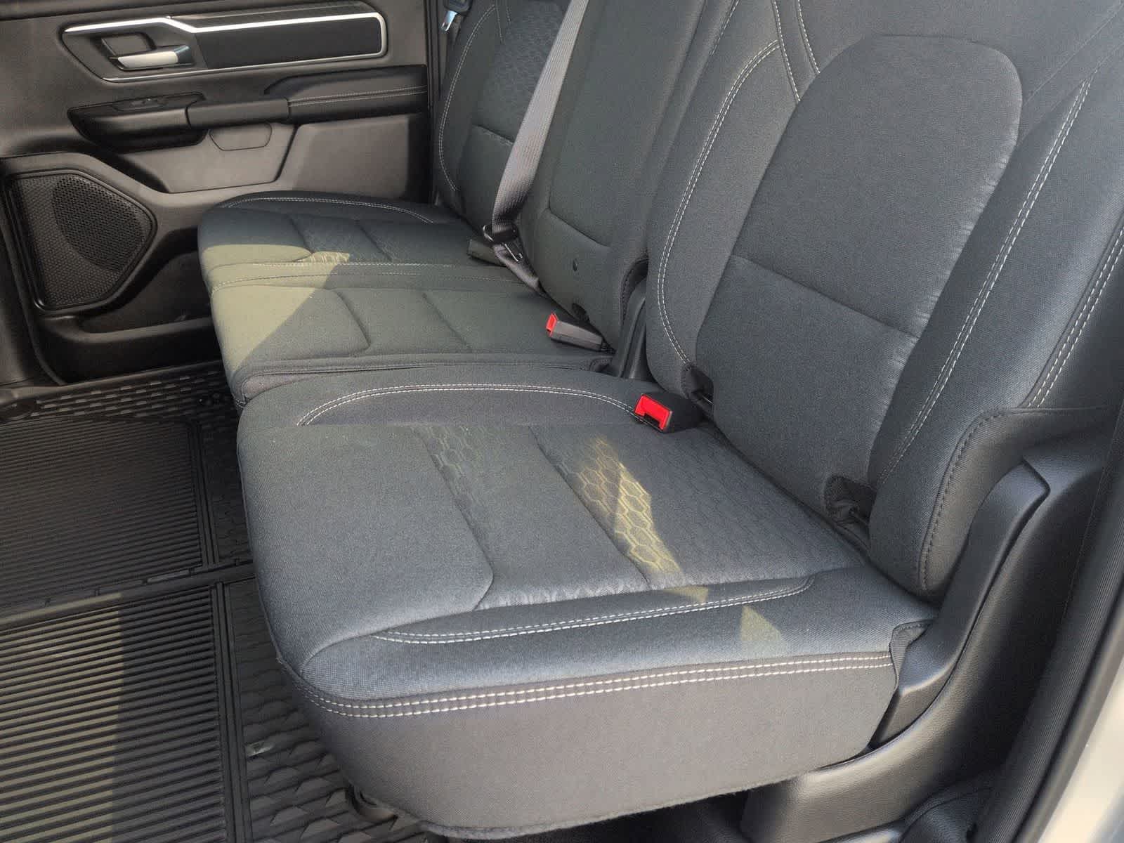1500 Big Horn/Lone Star is nicely equipped with Big Horn Level 1 Equipment Group (115V Auxiliary Power Outlet, 2nd Row in Floor Storage Bins, 3 Rear Seat Head Restraints, 4 Way Front Headrests, 400W Inverter, Auto Power-Folding Mirrors, Auto-Dimming Exterior Driver Mirror, Auto-Dimming Rear-View Mirror, Black Exterior Mirrors, Black Premium Power Mirrors, Body Color Fender Flares, Bucket Seats, Center Console Parts Module, Convex Wide-Angle Exterior Mirror Insert, Deluxe Cloth Bucket Seats, Exterior Mirrors Courtesy Lamps, Exterior Mirrors with Heating Element, Exterior Mirrors with Supplemental Signals, Front Seat Back Map Pockets, Full Length Floor Console, Glove Box Lamp, Heated Front Seats, Heated Steering Wheel, Leather Wrapped Steering Wheel, Manual Adjust 4-Way Front Passenger Seat, Power 2-Way Driver Lumbar Adjust, Power Adjust 8-Way Driver Seat, Power Adjustable Pedals, Rear 60/40 Folding Seat, Rear Center Armrest, Rear Dome with on/Off Switch Lamp, Rear Power Sliding Window, Rear Window Defroster, SiriusXM Radio Service, SiriusXM Satellite Radio, Steering Wheel Mounted Audio Controls, Sun Visors with Illuminated Vanity Mirrors, and Universal Garage Door Opener), Quick Order Package 27Z Big Horn, Sport Appearance Package (Black Interior Accents, Body Color Door Handles, Body Color Front Bumper, Body Color Rear Bumper with Step Pads, Body Color Tailgate Handle, Grille Surround 1 Body Color Texture 1 Black, and RAM Grille Badge - Chrome), 33 Gallon Fuel Tank, 4-Wheel Disc Brakes, 48V Belt Starter Generator, 4G LTE Wi-Fi Hot Spot, 6 Speakers, ABS brakes, Air Conditioning, Alloy wheels, AM/FM radio, Apple CarPlay, Apple CarPlay/Android Auto, Auto High-beam Headlights, Brake assist, Bumpers: chrome, Cloth Bucket Seats, Compass, Connectivity - US/Canada, Delay-off headlights, Driver door bin, Dual front impact airbags, Dual front side impact airbags, Electronic Stability Control, Front anti-roll bar, Front Bucket Seats, Front Center Armrest w/Storage, Front fog lights, Front reading lights, Front wheel independent suspension, Fully automatic headlights, Global Telematics Box Module, Google Android Auto, GPS Antenna Input, Heated door mirrors, Illuminated entry, Integrated Center Stack Radio, Integrated Voice Command with Bluetooth®, Low tire pressure warning, Manual Adjust 4-Way Driver Seat, Manual Folding Exterior Mirrors, MOPAR Front and Rear Rubber Floor Mats, Occupant sensing airbag, Outside temperature display, Overhead airbag, Overhead console, Panic alarm, ParkView Rear Back-Up Camera, Passenger door bin, Passenger vanity mirror, Power door mirrors, Power steering, Power windows, Radio data system, Radio: Uconnect 5 W with 8.4 Display, Rear anti-roll bar, Rear step bumper, Rear Wheelhouse Liners, Remote keyless entry, Speed control, Supplier Part Tracking (J-1), Tachometer, Telescoping steering wheel, Tilt steering wheel, Traction control, Trailer Brake Control, Trip computer, USB Host Flip, Variably intermittent wipers, Voltmeter, Wheel to Wheel Side Steps, and Wheels: 20 x 9 Aluminum Chrome Clad.
