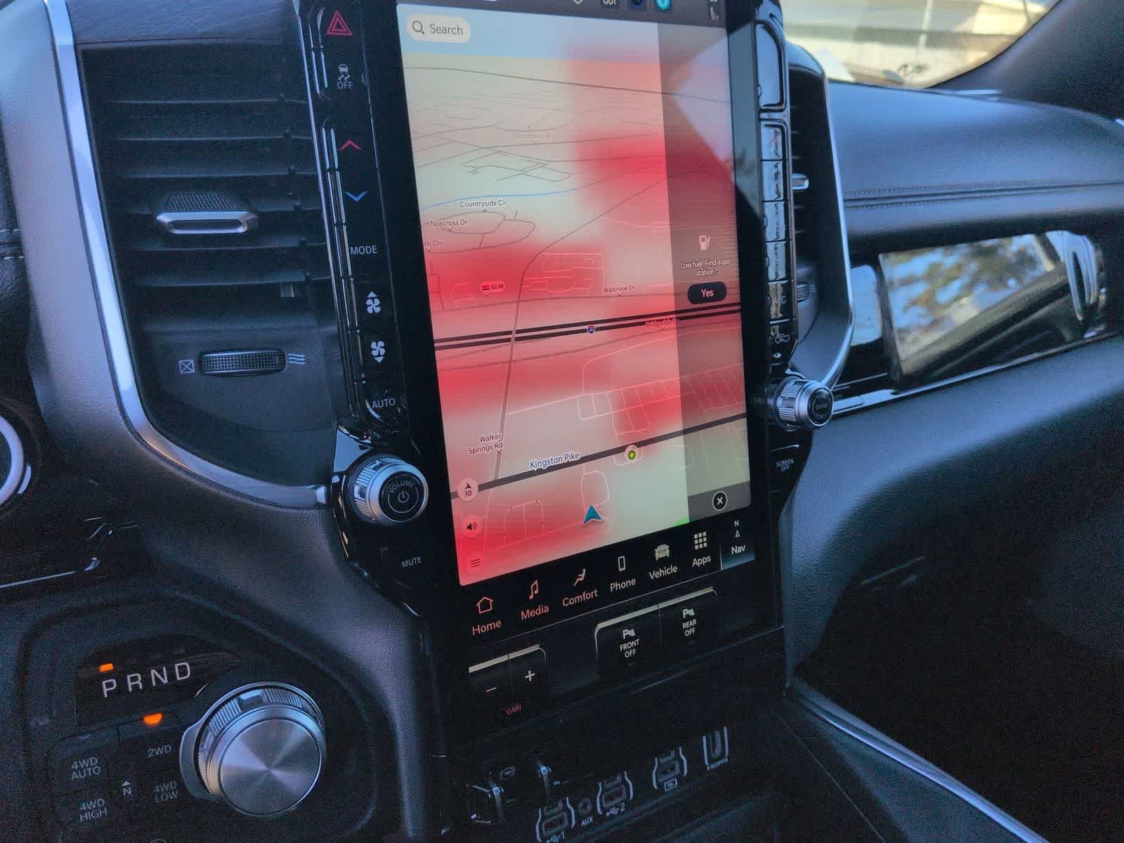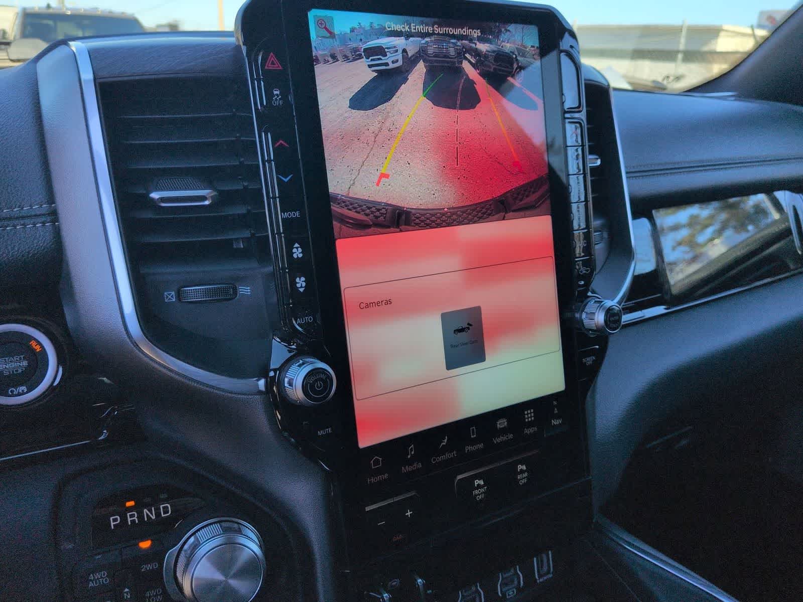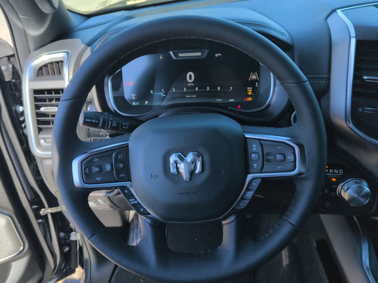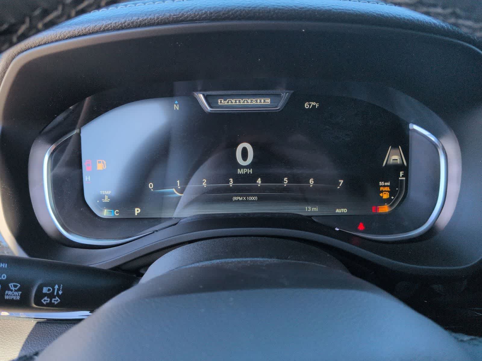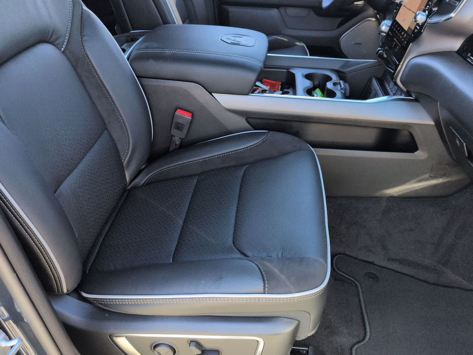 1500 Laramie is nicely equipped with Laramie Level 2 Equipment Group (14.4 Touchscreen Display, 4G LTE Wi-Fi Hot Spot, Cluster 12 TFT Color Display, Connected Travel and Traffic Services, Connectivity - US/Canada, Front Passenger Interactive Display, GPS Navigation, Harman/Kardon 19 Speaker Premium Sound, Integrated Center Stack Radio, Integrated Voice Command with Bluetooth®, Power Tailgate, Radio: Uconnect 5 Nav with 14.4 Display, Rain Sensitive Windshield Wipers, SiriusXM Radio Service, SiriusXM with 360L, and USB Host Flip), Night Edition (Accent Color Door Handles, Accent Color Premium Power Mirrors, Accent Color Tailgate Handle, Anti-Spin Differential Rear Axle, Auto Power-Folding Mirrors, Auto-Dimming Exterior Driver Mirror, Black Exterior Truck Badging, Black Headlamp Bezels, Black Interior Accents, Black Painted Exterior Mirrors Caps, Black Tail Lamp Bezels, Body Color Front Bumper, Body Color Rear Bumper with Step Pads, Convex Wide-Angle Exterior Mirror Insert, Dual Exhaust with Black Tips, Exterior Mirrors Approach Lamps, Exterior Mirrors Courtesy Lamps, Exterior Mirrors with Heating Element, Exterior Mirrors with Memory, Exterior Mirrors with Supplemental Signals, Grille Surround 3 Black Texture 2 Black, Pirelli Brand Tires, Proximity Approach/Departure Lamps, RAM Grille Badge - Black, Sport Performance Hood, and Wheels: 22 x 9 Forged Aluminum), Quick Order Package 21H Laramie, 10 Speakers, 3.55 Rear Axle Ratio, 4-Wheel Disc Brakes, ABS brakes, Active Noise Control System, Adjustable pedals, Air Conditioning, Alloy wheels, AM/FM radio: SiriusXM with 360L, Apple CarPlay/Android Auto, Audio memory, Auto High-beam Headlights, Auto-dimming door mirrors, Auto-dimming Rear-View mirror, Automatic temperature control, Brake assist, Bumpers: chrome, Chrome Exterior Mirrors, Compass, Delay-off headlights, Dome Dual LED Reading Lamp, Driver door bin, Driver vanity mirror, Dual front impact airbags, Dual front side impact airbags, Dual-Pane Panoramic Sunroof, Electronic Stability Control, Front anti-roll bar, Front Bucket Seats, Front Center Armrest w/Storage, Front dual zone A/C, Front fog lights, Front reading lights, Front wheel independent suspension, Fully automatic headlights, Garage door transmitter, Heated door mirrors, Heated front seats, Heated rear seats, Heated steering wheel, Illuminated entry, Leather steering wheel, Leather Trimmed Bucket Seats, LED Dome/Reading Lamp, Low tire pressure warning, Memory seat, Navigation System, Occupant sensing airbag, Off-Road Information Pages, Outside temperature display, Overhead airbag, Overhead console, Panic alarm, ParkView Rear Back-Up Camera, Passenger door bin, Passenger vanity mirror, Pedal memory, Power Deployable Running Boards, Power door mirrors, Power driver seat, Power passenger seat, Power steering, Power windows, Radio data system, Radio: Uconnect 5 Navigation with 12.0 Display, RAM Grille Badge - Chrome, Rear anti-roll bar, Rear reading lights, Rear seat center armrest, Rear step bumper, Remote keyless entry, Security system, Speed control, Split folding rear seat, Steering wheel mounted audio controls, Tachometer, Telescoping steering wheel, Tilt steering wheel, Traction control, Trailer Brake Control, Trip computer, Turn signal indicator mirrors, Variably intermittent wipers, Ventilated front seats, Voltmeter, and Wheels: 20 x 9 Premium Paint/Polish.