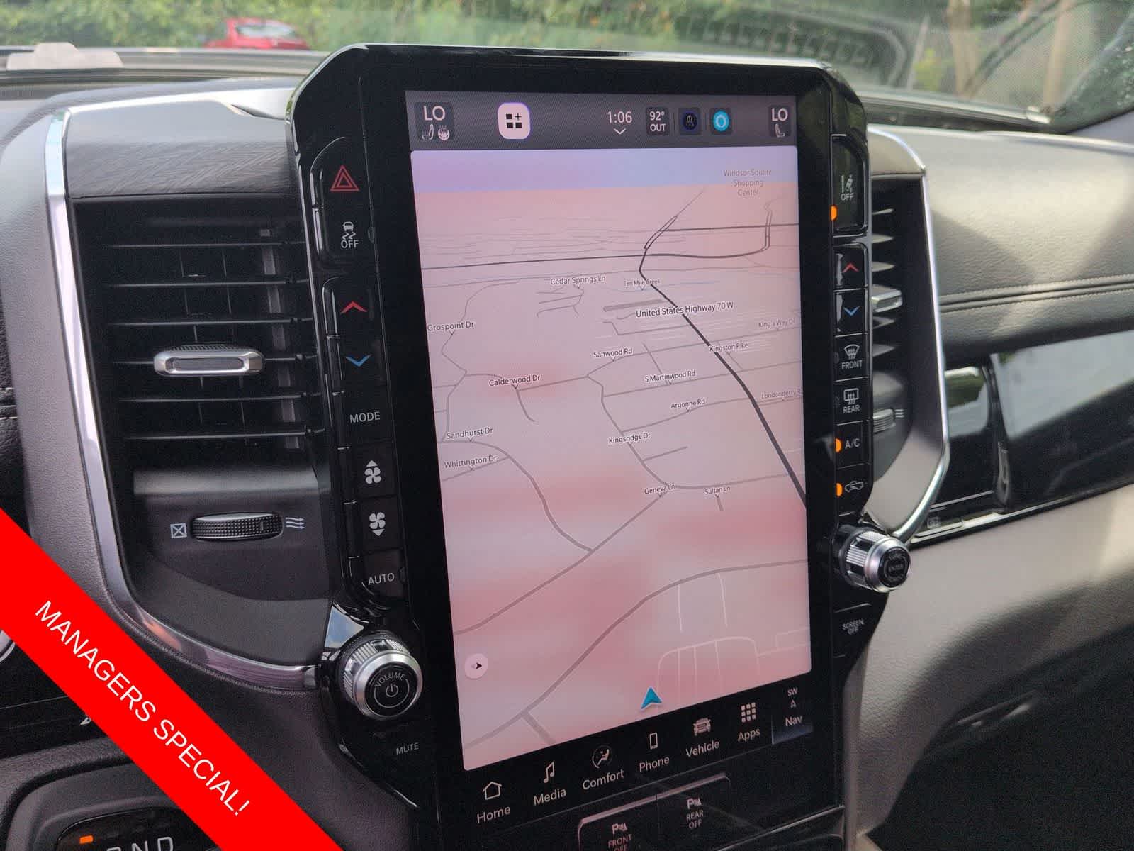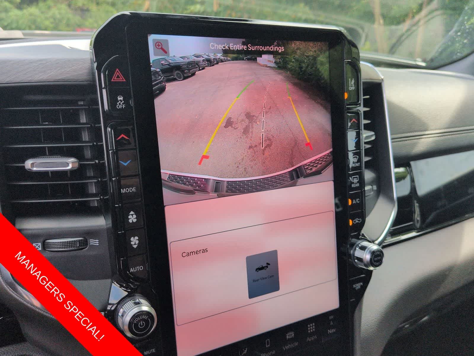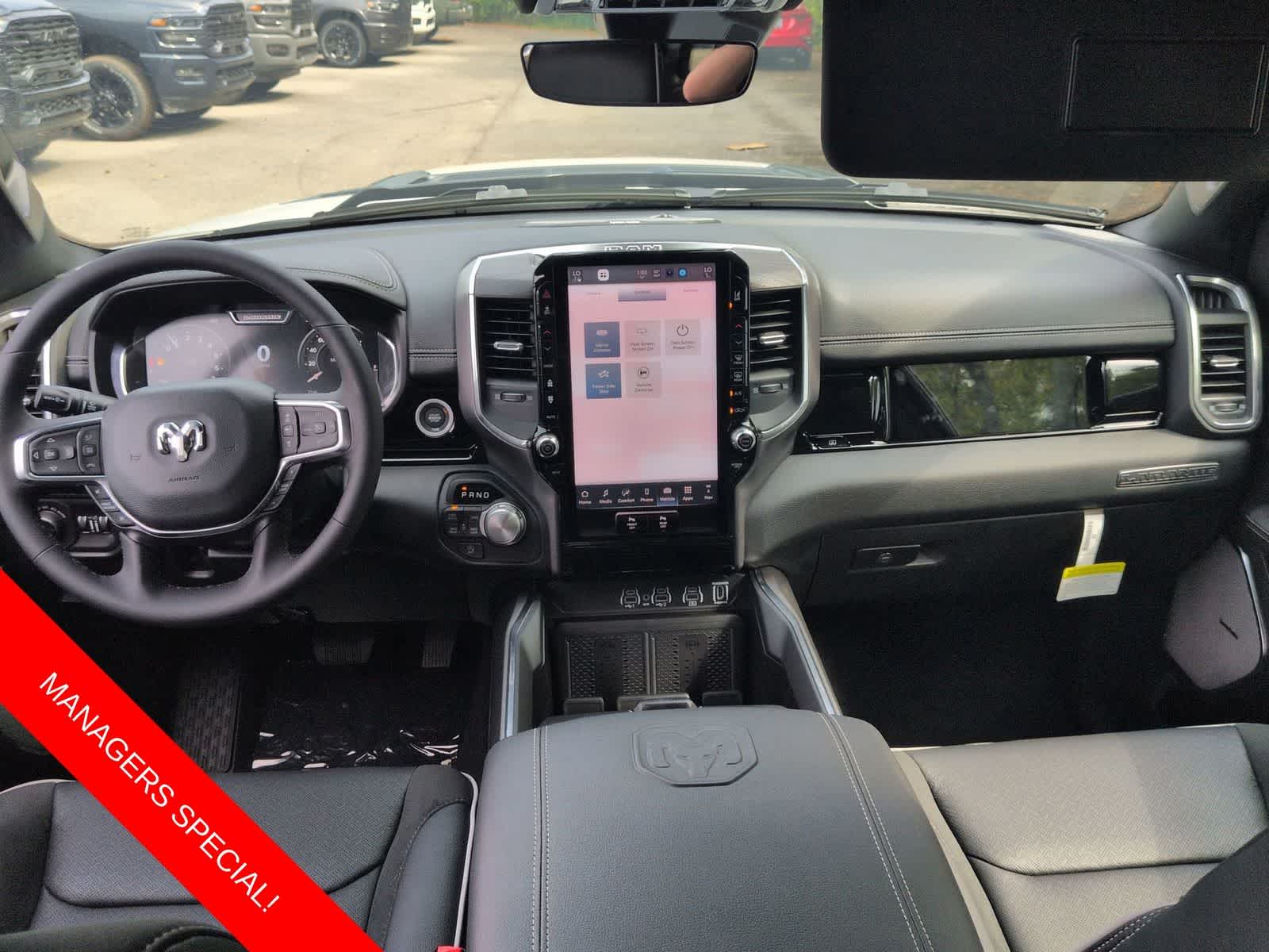 1500 Laramie is nicely equipped with Laramie Level 2 Equipment Group (14.4 Touchscreen Display, 4G LTE Wi-Fi Hot Spot, Cluster 12 TFT Color Display, Connected Travel and Traffic Services, Connectivity - US/Canada, Front Passenger Interactive Display, GPS Navigation, Harman/Kardon 19 Speaker Premium Sound, Integrated Center Stack Radio, Integrated Voice Command with Bluetooth®, Power Tailgate, Radio: Uconnect 5 Nav with 14.4 Display, Rain Sensitive Windshield Wipers, SiriusXM Radio Service, SiriusXM with 360L, and USB Host Flip), Night Edition (Accent Color Door Handles, Accent Color Premium Power Mirrors, Accent Color Tailgate Handle, Anti-Spin Differential Rear Axle, Auto Power-Folding Mirrors, Auto-Dimming Exterior Driver Mirror, Black Exterior Truck Badging, Black Headlamp Bezels, Black Interior Accents, Black Painted Exterior Mirrors Caps, Black Tail Lamp Bezels, Body Color Front Bumper, Body Color Rear Bumper with Step Pads, Convex Wide-Angle Exterior Mirror Insert, Dual Exhaust with Black Tips, Exterior Mirrors Approach Lamps, Exterior Mirrors Courtesy Lamps, Exterior Mirrors with Heating Element, Exterior Mirrors with Memory, Exterior Mirrors with Supplemental Signals, Grille Surround 3 Black Texture 2 Black, Pirelli Brand Tires, Proximity Approach/Departure Lamps, RAM Grille Badge - Black, Sport Performance Hood, and Wheels: 22 x 9 Forged Aluminum), Quick Order Package 21H Laramie, 10 Speakers, 3.55 Rear Axle Ratio, 4-Wheel Disc Brakes, ABS brakes, Active Noise Control System, Air Conditioning, Alloy wheels, AM/FM radio: SiriusXM with 360L, Apple CarPlay/Android Auto, Audio memory, Auto High-beam Headlights, Auto-dimming door mirrors, Auto-dimming Rear-View mirror, Automatic temperature control, Brake assist, Bumpers: chrome, Chrome Exterior Mirrors, Compass, Delay-off headlights, Dome Dual LED Reading Lamp, Driver door bin, Driver vanity mirror, Dual front impact airbags, Dual front side impact airbags, Dual-Pane Panoramic Sunroof, Electronic Stability Control, Front anti-roll bar, Front Bucket Seats, Front Center Armrest w/Storage, Front dual zone A/C, Front fog lights, Front reading lights, Front wheel independent suspension, Fully automatic headlights, Garage door transmitter, Heated door mirrors, Heated front seats, Heated rear seats, Heated steering wheel, Illuminated entry, Leather steering wheel, Leather Trimmed Bucket Seats, LED Dome/Reading Lamp, Low tire pressure warning, Memory seat, Navigation System, Occupant sensing airbag, Off-Road Information Pages, Outside temperature display, Overhead airbag, Overhead console, Panic alarm, ParkView Rear Back-Up Camera, Passenger door bin, Passenger vanity mirror, Power Deployable Running Boards, Power door mirrors, Power driver seat, Power passenger seat, Power steering, Power windows, Radio data system, Radio: Uconnect 5 Navigation with 12.0 Display, RAM Grille Badge - Chrome, Rear anti-roll bar, Rear reading lights, Rear seat center armrest, Rear step bumper, Remote keyless entry, Security system, Speed control, Split folding rear seat, Steering wheel mounted audio controls, Tachometer, Telescoping steering wheel, Tilt steering wheel, Traction control, Trip computer, Turn signal indicator mirrors, Variably intermittent wipers, Ventilated front seats, Voltmeter, and Wheels: 20 x 9 Premium Paint/Polish.