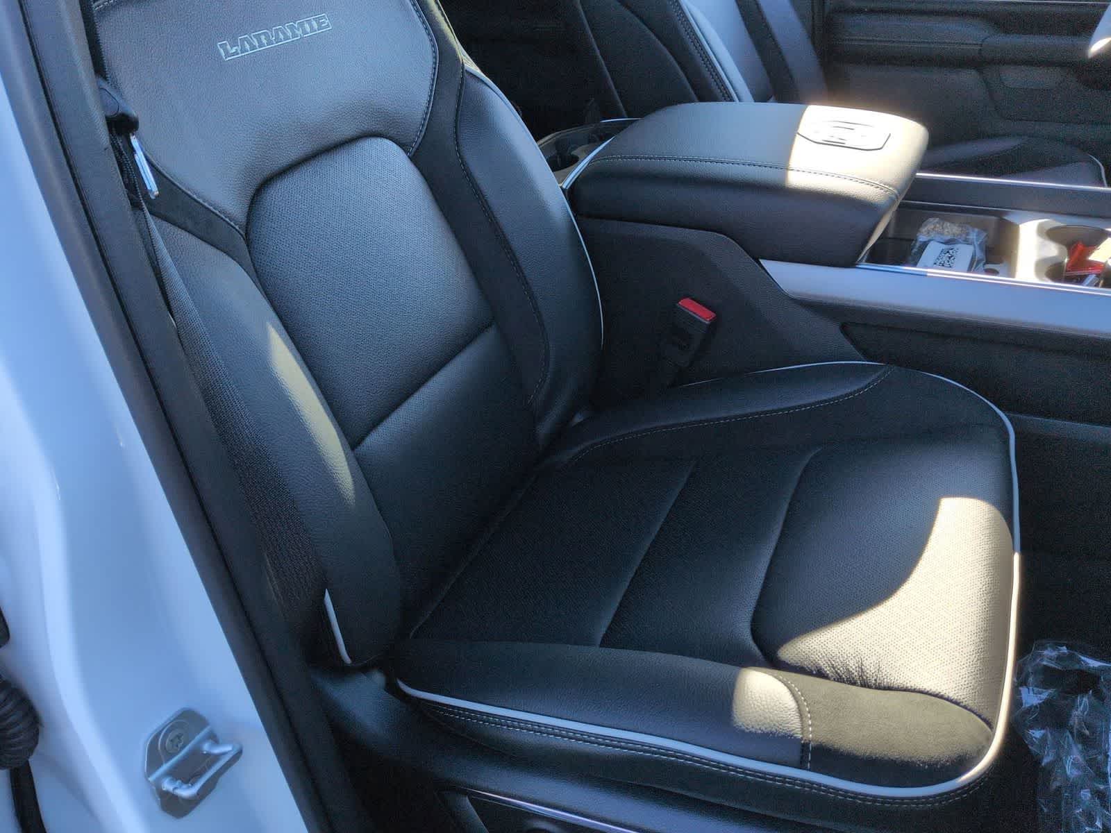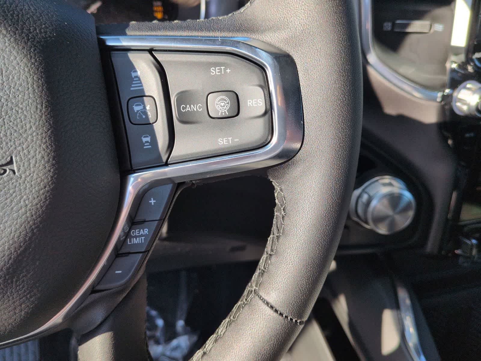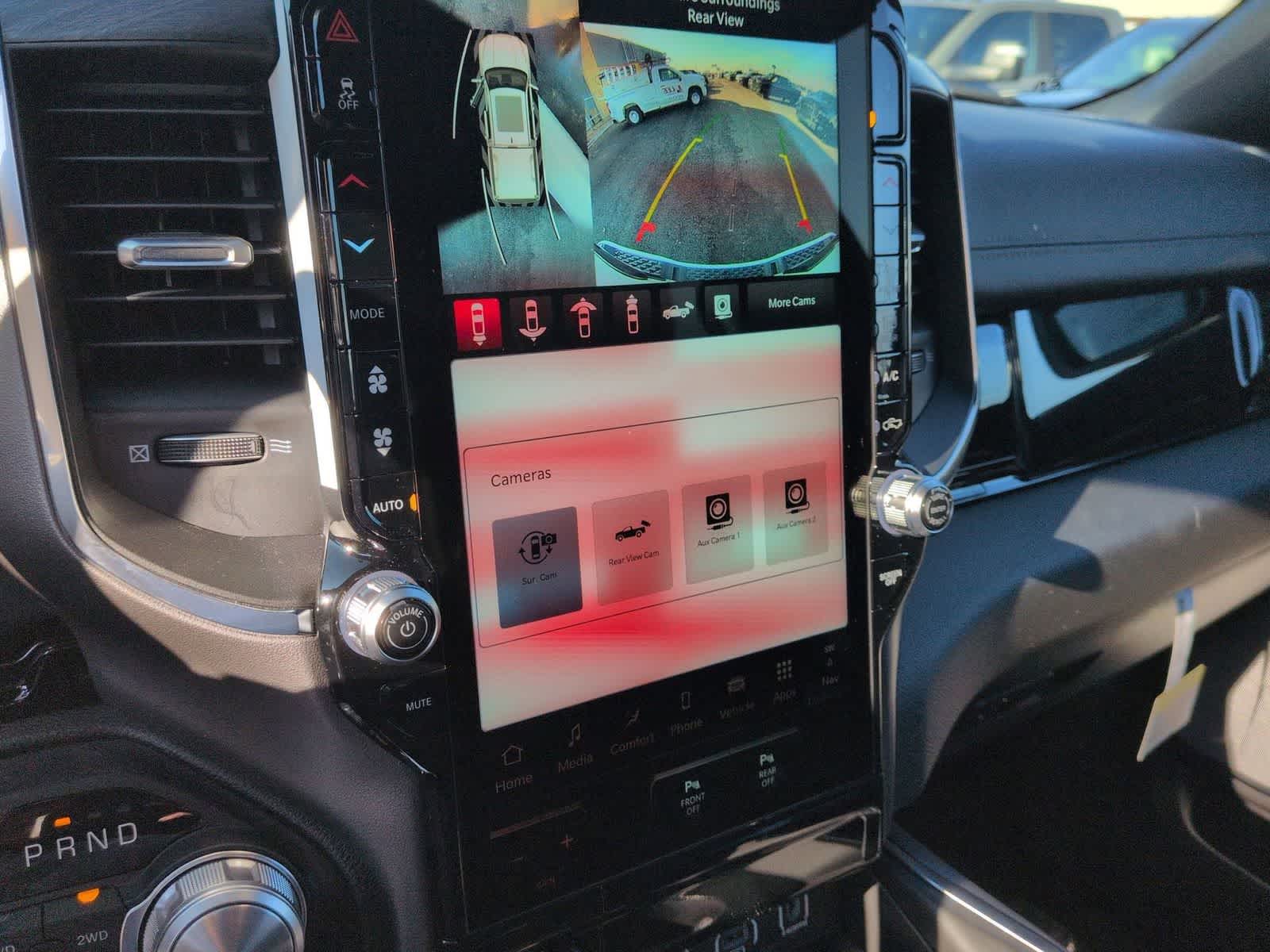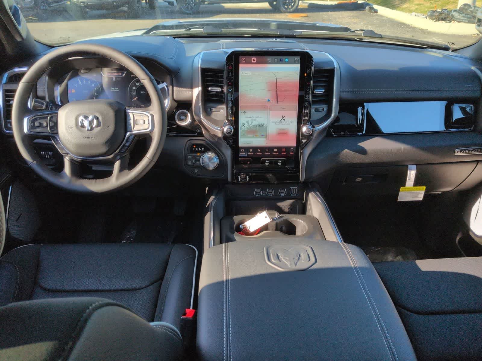 1500 Laramie is nicely equipped with Advanced Safety Group II (12-Way/1-Way Trailer Connector, Active Driving Assist System, Drowsy Driver Detection, Evasive Steer Assist, Exterior Mirrors Approach Lamps, Intersection Collision Assist System, Surround View Camera System, and Traffic Sign Recognition), Laramie Level 2 Equipment Group (14.4 Touchscreen Display, 4G LTE Wi-Fi Hot Spot, Cluster 12 TFT Color Display, Connected Travel and Traffic Services, Connectivity - US/Canada, Front Passenger Interactive Display, GPS Navigation, Harman/Kardon 19 Speaker Premium Sound, Integrated Center Stack Radio, Integrated Voice Command with Bluetooth®, Power Tailgate, Radio: Uconnect 5 Nav with 14.4 Display, Rain Sensitive Windshield Wipers, SiriusXM Radio Service, SiriusXM with 360L, and USB Host Flip), Night Edition (Accent Color Door Handles, Accent Color Premium Power Mirrors, Accent Color Tailgate Handle, Anti-Spin Differential Rear Axle, Auto Power-Folding Mirrors, Auto-Dimming Exterior Driver Mirror, Black Exterior Truck Badging, Black Headlamp Bezels, Black Interior Accents, Black Painted Exterior Mirrors Caps, Black Tail Lamp Bezels, Body Color Front Bumper, Body Color Rear Bumper with Step Pads, Convex Wide-Angle Exterior Mirror Insert, Dual Exhaust with Black Tips, Exterior Mirrors Courtesy Lamps, Exterior Mirrors with Heating Element, Exterior Mirrors with Memory, Exterior Mirrors with Supplemental Signals, Grille Surround 3 Black Texture 2 Black, Pirelli Brand Tires, Proximity Approach/Departure Lamps, RAM Grille Badge - Black, Sport Performance Hood, and Wheels: 22 x 9 Forged Aluminum), Quick Order Package 21H Laramie, Technology Group (Heads-Up Display and LED CHMSL Lamp), 10 Speakers, 3.55 Rear Axle Ratio, 4-Wheel Disc Brakes, ABS brakes, Active Noise Control System, Adjustable pedals, Air Conditioning, Alloy wheels, AM/FM radio: SiriusXM with 360L, Apple CarPlay/Android Auto, Audio memory, Auto High-beam Headlights, Auto-dimming door mirrors, Auto-dimming Rear-View mirror, Automatic temperature control, Brake assist, Bumpers: chrome, Chrome Exterior Mirrors, Compass, Delay-off headlights, Dome Dual LED Reading Lamp, Driver door bin, Driver vanity mirror, Dual front impact airbags, Dual front side impact airbags, Dual-Pane Panoramic Sunroof, Electronic Stability Control, Front anti-roll bar, Front Bucket Seats, Front Center Armrest w/Storage, Front dual zone A/C, Front fog lights, Front reading lights, Front wheel independent suspension, Fully automatic headlights, Garage door transmitter, Heated door mirrors, Heated front seats, Heated rear seats, Heated steering wheel, Illuminated entry, Leather steering wheel, Leather Trimmed Bucket Seats, LED Dome/Reading Lamp, Low tire pressure warning, Memory seat, Navigation System, Occupant sensing airbag, Off-Road Information Pages, Outside temperature display, Overhead airbag, Overhead console, Panic alarm, ParkView Rear Back-Up Camera, Passenger door bin, Passenger vanity mirror, Pedal memory, Power Deployable Running Boards, Power door mirrors, Power driver seat, Power passenger seat, Power steering, Power windows, Radio data system, Radio: Uconnect 5 Navigation with 12.0 Display, RAM Grille Badge - Chrome, Rear anti-roll bar, Rear reading lights, Rear seat center armrest, Rear step bumper, Remote keyless entry, Security system, Speed control, Split folding rear seat, Steering wheel mounted audio controls, Tachometer, Telescoping stee