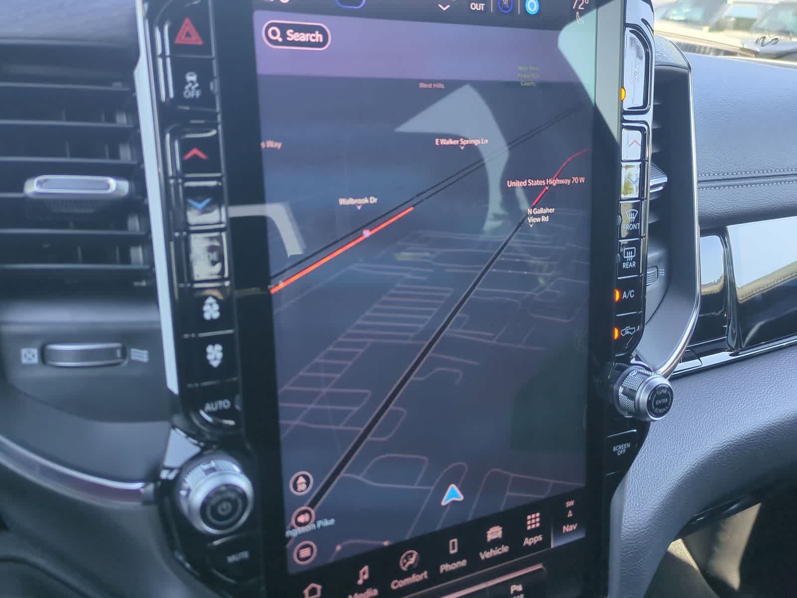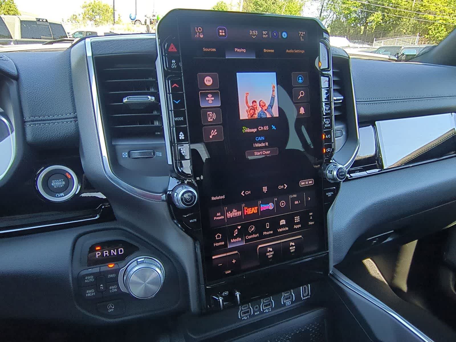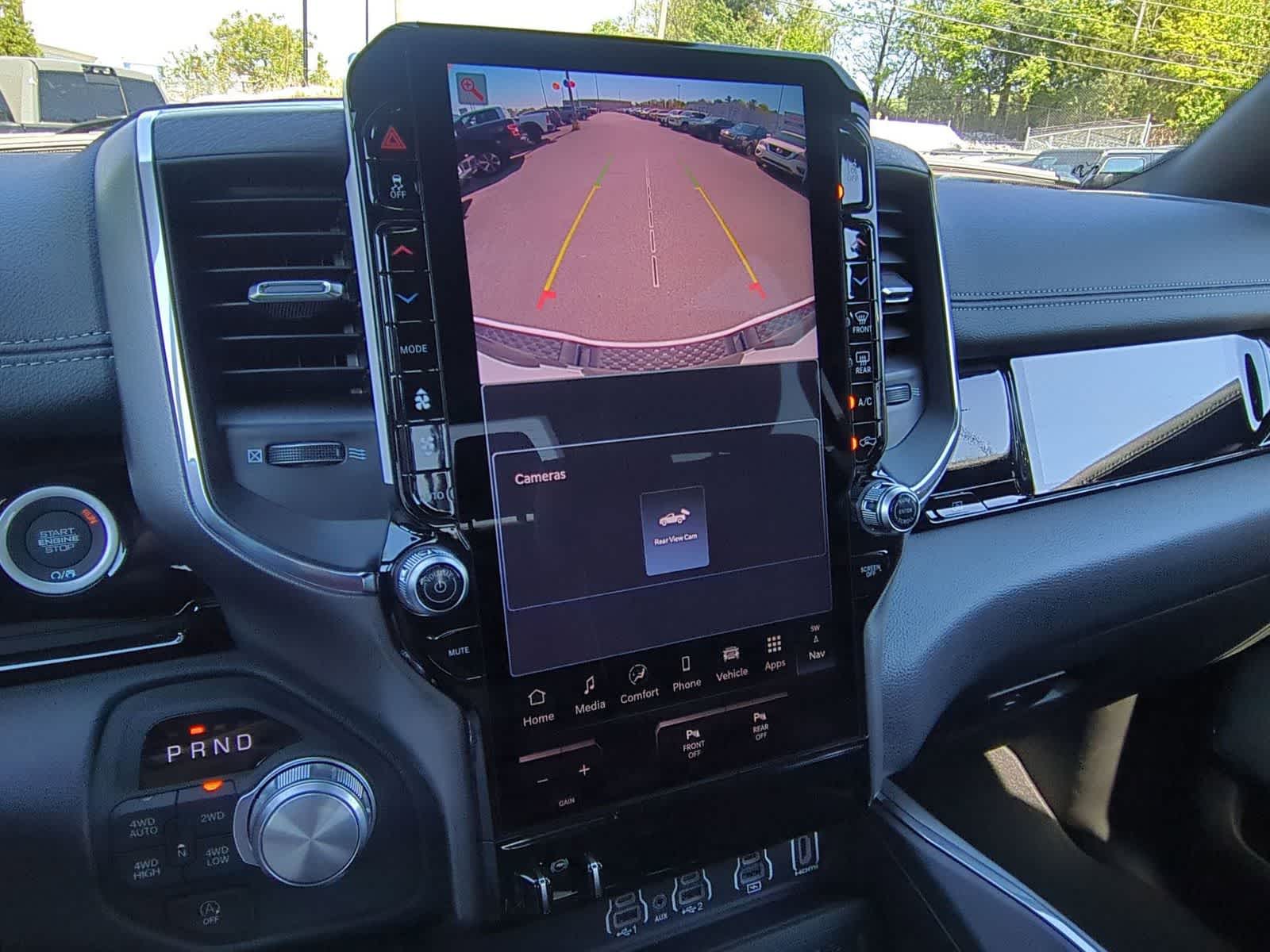 1500 Laramie is nicely equipped with Bed Utility Group (Exterior 115V AC Outlet, MOPAR 4 Adjustable Cargo Tie-Down Hooks, and MOPAR Spray in Bedliner), Laramie Level 2 Equipment Group (14.4 Touchscreen Display, 4G LTE Wi-Fi Hot Spot, Cluster 12 TFT Color Display, Connected Travel and Traffic Services, Connectivity - US/Canada, Front Passenger Interactive Display, GPS Navigation, Harman/Kardon 19 Speaker Premium Sound, Integrated Center Stack Radio, Integrated Voice Command with Bluetooth®, Power Tailgate, Radio: Uconnect 5 Nav with 14.4 Display, Rain Sensitive Windshield Wipers, SiriusXM Radio Service, SiriusXM with 360L, and USB Host Flip), Night Edition (Accent Color Door Handles, Accent Color Premium Power Mirrors, Accent Color Tailgate Handle, Anti-Spin Differential Rear Axle, Auto Power-Folding Mirrors, Auto-Dimming Exterior Driver Mirror, Black Exterior Truck Badging, Black Headlamp Bezels, Black Interior Accents, Black Painted Exterior Mirrors Caps, Black Tail Lamp Bezels, Body Color Front Bumper, Body Color Rear Bumper with Step Pads, Convex Wide-Angle Exterior Mirror Insert, Dual Exhaust with Black Tips, Exterior Mirrors Approach Lamps, Exterior Mirrors Courtesy Lamps, Exterior Mirrors with Heating Element, Exterior Mirrors with Memory, Exterior Mirrors with Supplemental Signals, Grille Surround 3 Black Texture 2 Black, Pirelli Brand Tires, Proximity Approach/Departure Lamps, RAM Grille Badge - Black, Sport Performance Hood, and Wheels: 22 x 9 Forged Aluminum), Quick Order Package 27H Laramie, 10 Speakers, 4-Wheel Disc Brakes, ABS brakes, Active Noise Control System, Adjustable pedals, Air Conditioning, Alloy wheels, AM/FM radio: SiriusXM with 360L, Apple CarPlay/Android Auto, Audio memory, Auto High-beam Headlights, Auto-dimming door mirrors, Auto-dimming Rear-View mirror, Automatic temperature control, Brake assist, Bumpers: chrome, Chrome Exterior Mirrors, Compass, Delay-off headlights, Driver door bin, Driver vanity mirror, Dual front impact airbags, Dual front side impact airbags, Electronic Stability Control, Front anti-roll bar, Front Bucket Seats, Front Center Armrest w/Storage, Front dual zone A/C, Front fog lights, Front reading lights, Front wheel independent suspension, Fully automatic headlights, Garage door transmitter, Heated door mirrors, Heated front seats, Heated rear seats, Heated steering wheel, Illuminated entry, Leather steering wheel, Leather Trimmed Bucket Seats, Low tire pressure warning, Manufacturers Statement of Origin, Memory seat, Mopar Black Tubular Side Steps, Navigation System, Occupant sensing airbag, Off-Road Information Pages, Outside temperature display, Overhead airbag, Overhead console, Panic alarm, ParkView Rear Back-Up Camera, Passenger door bin, Passenger vanity mirror, Pedal memory, Power door mirrors, Power driver seat, Power passenger seat, Power steering, Power windows, Radio data system, Radio: Uconnect 5 Navigation with 12.0 Display, RAM Grille Badge - Chrome, Rear anti-roll bar, Rear reading lights, Rear seat center armrest, Rear step bumper, Remote keyless entry, Security system, Speed control, Split folding rear seat, Steering wheel mounted audio controls, Tachometer, Telescoping steering wheel, Tilt steering wheel, Traction control, Trailer Brake Control, Trip computer, Turn signal indicator mirrors, Variably intermittent wipers, Ventilated front seats, Voltmeter, and Wheels