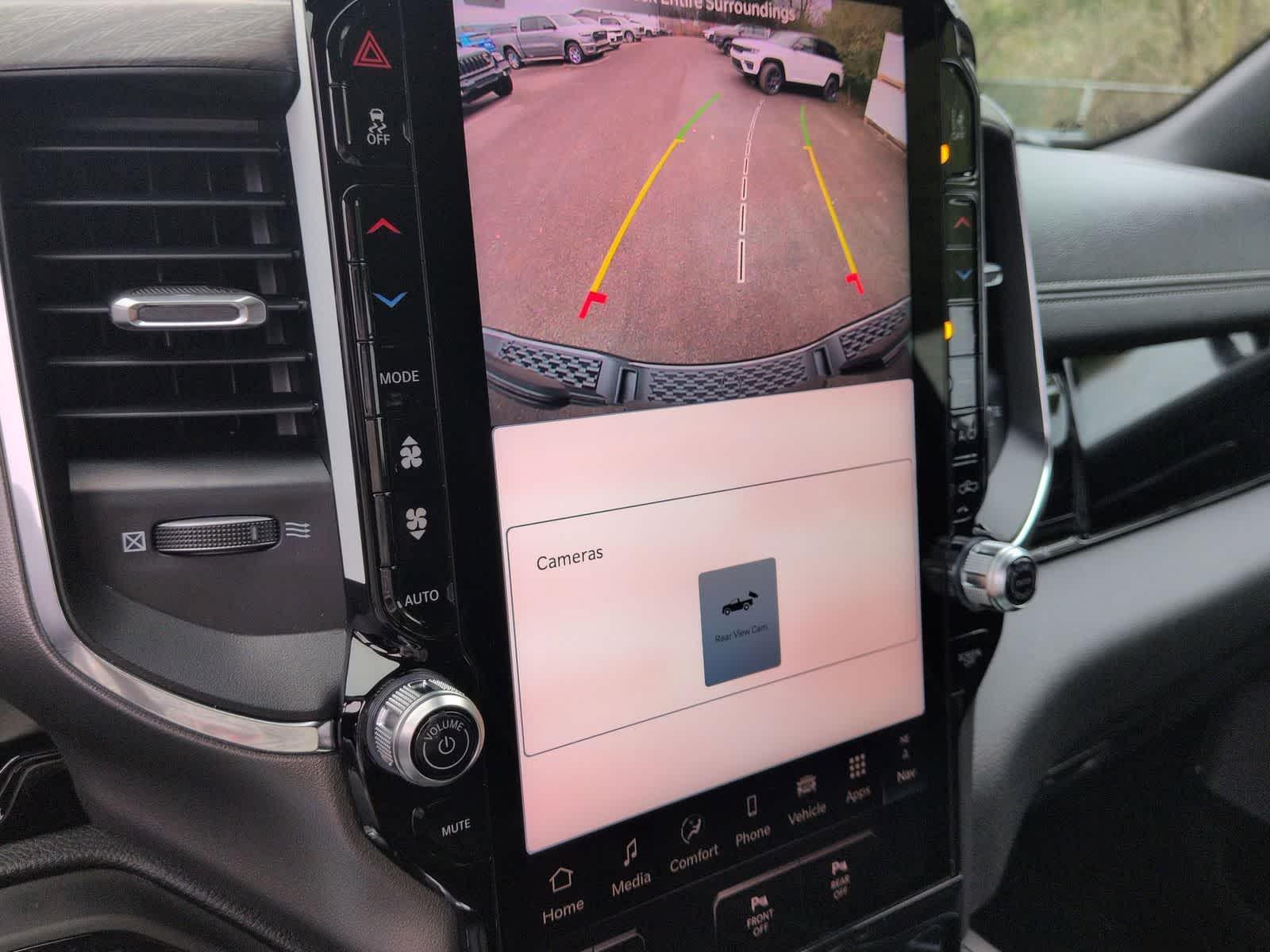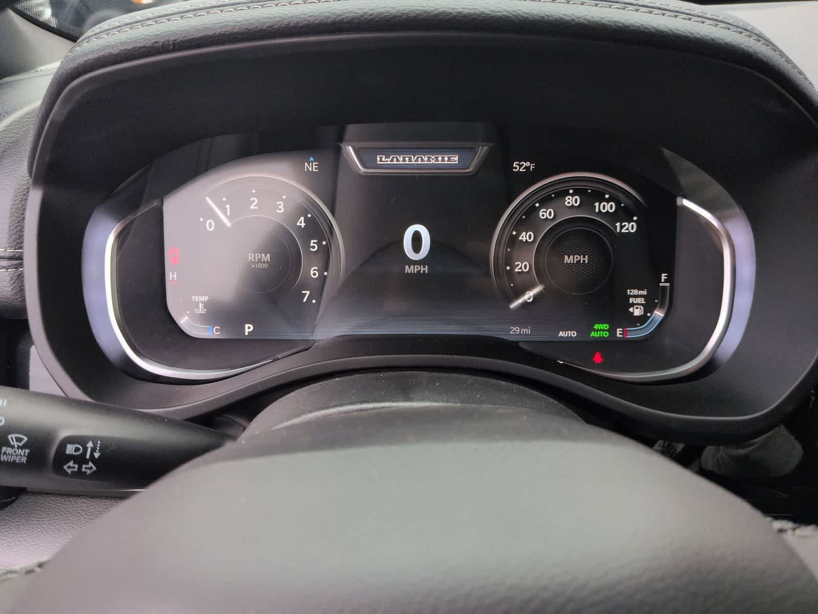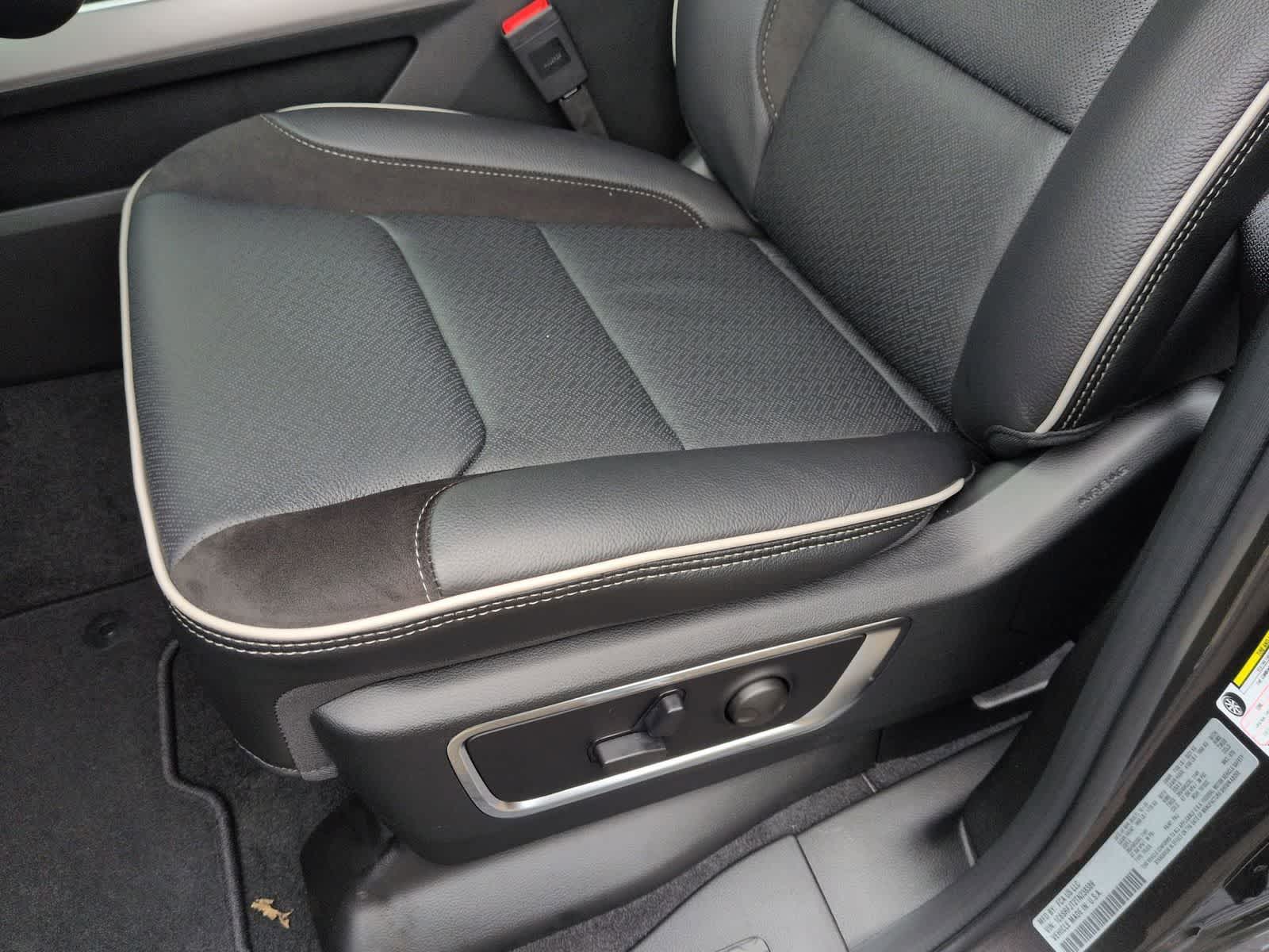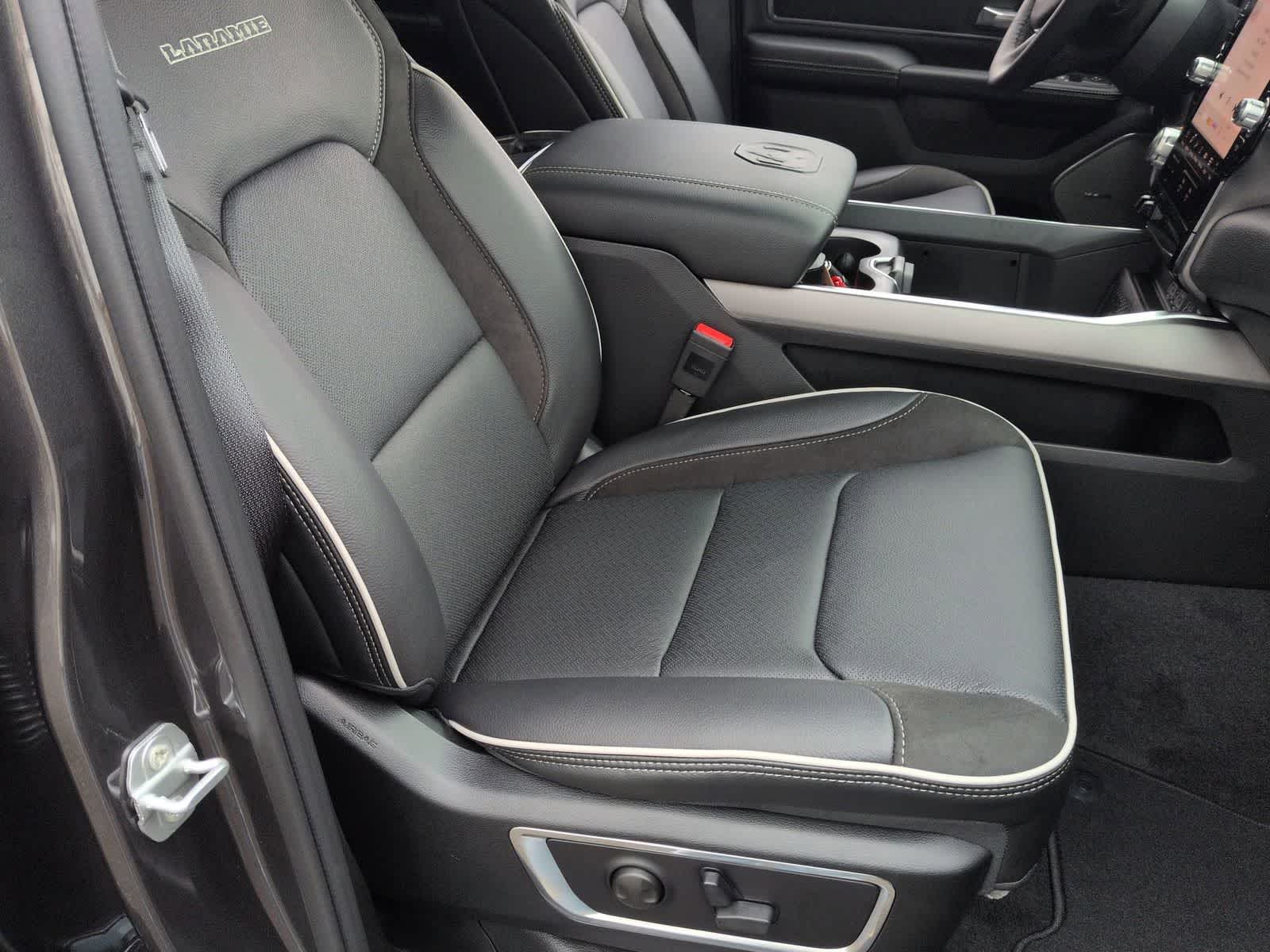 1500 Laramie is nicely equipped with Bed Utility Group (Exterior 115V AC Outlet, MOPAR 4 Adjustable Cargo Tie-Down Hooks, and MOPAR Spray in Bedliner), Laramie Level 2 Equipment Group (14.4 Touchscreen Display, 4G LTE Wi-Fi Hot Spot, Cluster 12 TFT Color Display, Connected Travel and Traffic Services, Connectivity - US/Canada, Front Passenger Interactive Display, GPS Navigation, Harman/Kardon 19 Speaker Premium Sound, Integrated Center Stack Radio, Integrated Voice Command with Bluetooth®, Power Tailgate, Radio: Uconnect 5 Nav with 14.4 Display, Rain Sensitive Windshield Wipers, SiriusXM Radio Service, SiriusXM with 360L, and USB Host Flip), Night Edition (Accent Color Door Handles, Accent Color Premium Power Mirrors, Accent Color Tailgate Handle, Anti-Spin Differential Rear Axle, Auto Power-Folding Mirrors, Auto-Dimming Exterior Driver Mirror, Black Exterior Truck Badging, Black Headlamp Bezels, Black Interior Accents, Black Painted Exterior Mirrors Caps, Black Tail Lamp Bezels, Body Color Front Bumper, Body Color Rear Bumper with Step Pads, Convex Wide-Angle Exterior Mirror Insert, Dual Exhaust with Black Tips, Exterior Mirrors Approach Lamps, Exterior Mirrors Courtesy Lamps, Exterior Mirrors with Heating Element, Exterior Mirrors with Memory, Exterior Mirrors with Supplemental Signals, Grille Surround 3 Black Texture 2 Black, Pirelli Brand Tires, Proximity Approach/Departure Lamps, RAM Grille Badge - Black, Sport Performance Hood, and Wheels: 22 x 9 Forged Aluminum), Quick Order Package 27H Laramie, 10 Speakers, 4-Wheel Disc Brakes, ABS brakes, Active Noise Control System, Air Conditioning, Alloy wheels, AM/FM radio: SiriusXM with 360L, Apple CarPlay/Android Auto, Audio memory, Auto High-beam Headlights, Auto-dimming door mirrors, Auto-dimming Rear-View mirror, Automatic temperature control, Brake assist, Bumpers: chrome, Chrome Exterior Mirrors, Compass, Delay-off headlights, Dome Dual LED Reading Lamp, Driver door bin, Driver vanity mirror, Dual front impact airbags, Dual front side impact airbags, Dual-Pane Panoramic Sunroof, Electronic Stability Control, Front anti-roll bar, Front Bucket Seats, Front Center Armrest w/Storage, Front dual zone A/C, Front fog lights, Front reading lights, Front wheel independent suspension, Fully automatic headlights, Garage door transmitter, Heated door mirrors, Heated front seats, Heated rear seats, Heated steering wheel, Illuminated entry, Leather steering wheel, Leather Trimmed Bucket Seats, LED Dome/Reading Lamp, Low tire pressure warning, Memory seat, Navigation System, Occupant sensing airbag, Off-Road Information Pages, Outside temperature display, Overhead airbag, Overhead console, Panic alarm, ParkView Rear Back-Up Camera, Passenger door bin, Passenger vanity mirror, Power Deployable Running Boards, Power door mirrors, Power driver seat, Power passenger seat, Power steering, Power windows, Radio data system, Radio: Uconnect 5 Navigation with 12.0 Display, RAM Grille Badge - Chrome, Rear anti-roll bar, Rear reading lights, Rear seat center armrest, Rear step bumper, Remote keyless entry, Security system, Speed control, Split folding rear seat, Steering wheel mounted audio controls, Tachometer, Telescoping steering wheel, Tilt steering wheel, Traction control, Trailer Brake Control, Trip computer, Turn signal indicator mirrors, Variably intermittent wipers, Ventilated front seats