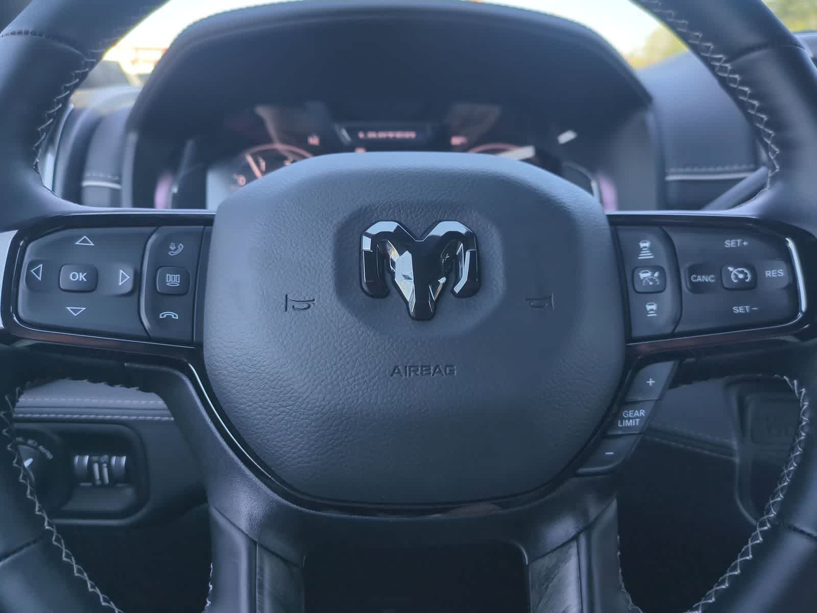 2500 Limited is nicely equipped with Limited Level 1 Equipment Group (Active Lane Management System, Adaptive Steering System, Anti-Spin Differential Rear Axle, Center Stop Lamp with Cargo View Camera, Digital Rearview Mirror, Drowsy Driver Detection, LED Bed Lighting, MOPAR Spray in Bedliner, MOPAR Trailer Camera Wiring with No Camera, Power Deployable Running Boards, Surround View Camera System, Traffic Sign Recognition, Trailer Reverse Guidance, and Trailer Tire Pressure Monitoring System), Night Edition (Black Exterior Truck Badging, Black Interior Accents, Black Limited Grille, Black Wheel Center Hub, Body Color Grille Surround, Sport Performance Hood, and Wheels: 20 x 8 Night Edition Black Aluminum), Quick Order Package 24M Limited, Tow-Mode Digital Rearview Mirror Package (Tow-Mode Camera (Wired)), 17 Speakers, 3.42 Axle Ratio, 4-Wheel Disc Brakes, 5th Wheel/Gooseneck Towing Prep Group, ABS brakes, Adjustable pedals, Air Conditioning, Alloy wheels, AM/FM radio: SiriusXM with 360L, Apple CarPlay/Android Auto, Audio memory, Auto High-beam Headlights, Auto-dimming door mirrors, Auto-dimming Rear-View mirror, Automatic temperature control, Bodyside moldings, Brake assist, Bumpers: body-color, Clearance Lamps, Compass, Dash Pass Thru Wire Circuits, Delay-off headlights, Driver door bin, Driver vanity mirror, Dual front impact airbags, Dual front side impact airbags, Electronic Stability Control, Engine Block Heater, Front anti-roll bar, Front Bucket Seats, Front Center Armrest w/Storage, Front dual zone A/C, Front fog lights, Front License Plate Bracket, Front reading lights, Fully automatic headlights, Garage door transmitter, Genuine wood console insert, Genuine wood dashboard insert, Genuine wood door panel insert, harman/kardon® Speakers, Heated door mirrors, Heated front seats, Heated rear seats, Heated steering wheel, Illuminated entry, Instrument Panel Mounted Auxiliary Switches, Leather steering wheel, Low tire pressure warning, Memory seat, Navigation System, Occupant sensing airbag, Outside temperature display, Overhead airbag, Overhead console, Panic alarm, ParkView Rear Back-Up Camera, Passenger door bin, Passenger vanity mirror, Pedal memory, Pickup Box, Power door mirrors, Power driver seat, Power passenger seat, Power steering, Power Sunroof, Power windows, Radio data system, Radio: Uconnect 5 Nav with 14.4 Display, Rain sensing wipers, Rear anti-roll bar, Rear reading lights, Rear seat center armrest, Rear step bumper, Rear window defroster, Remote keyless entry, Security system, Speed control, Split folding rear seat, Steering wheel mounted audio controls, Tachometer, Tilt steering wheel, Traction control, Trip computer, Turn signal indicator mirrors, Ultra Premium Leather Seats, Variably intermittent wipers, Vendor Painted Cargo Box, Vendor Painted Cargo Box Tracking, Ventilated front seats, Voltmeter, and Wheels: 20 x 8 Diamond Cut Aluminum.