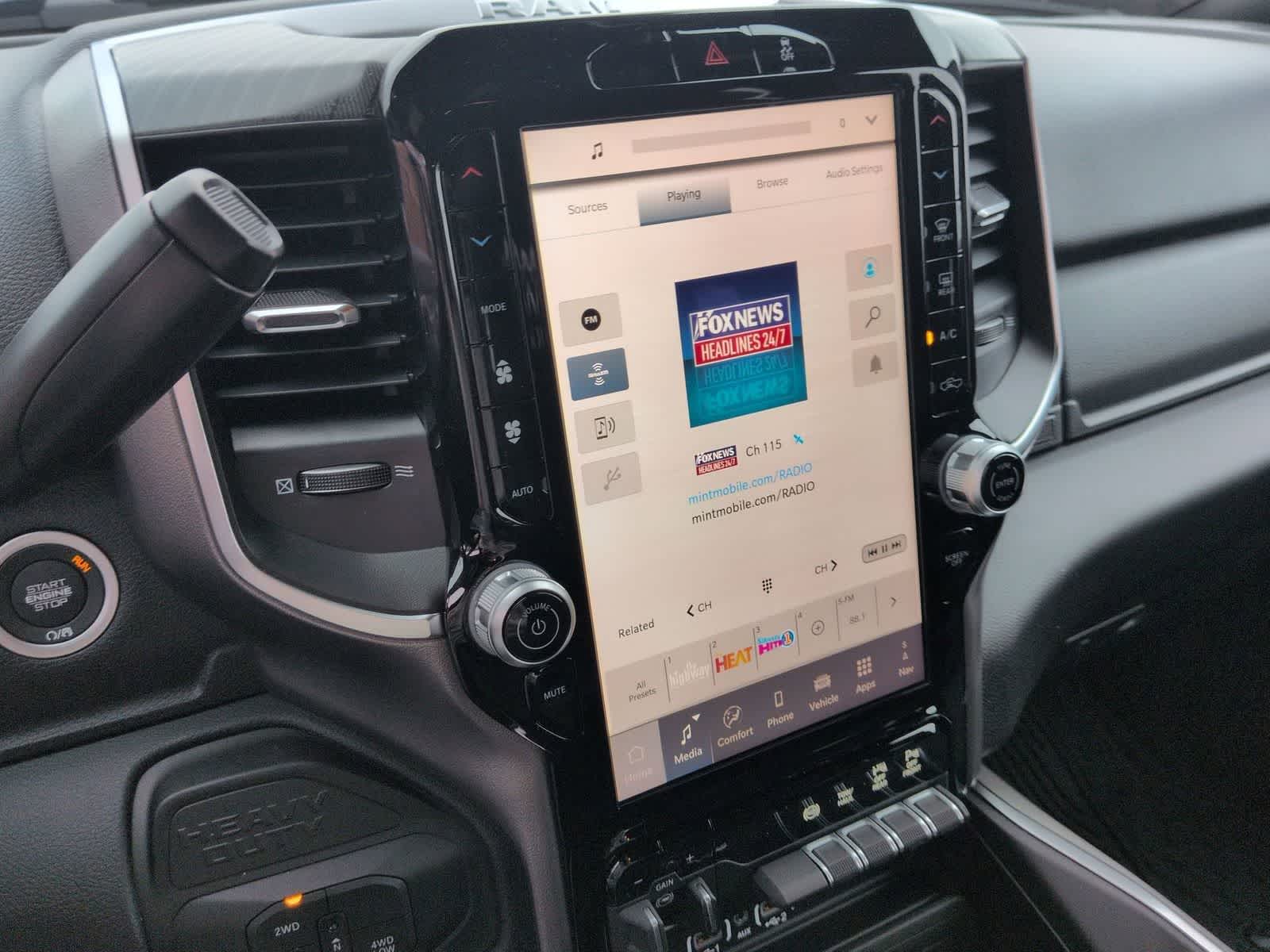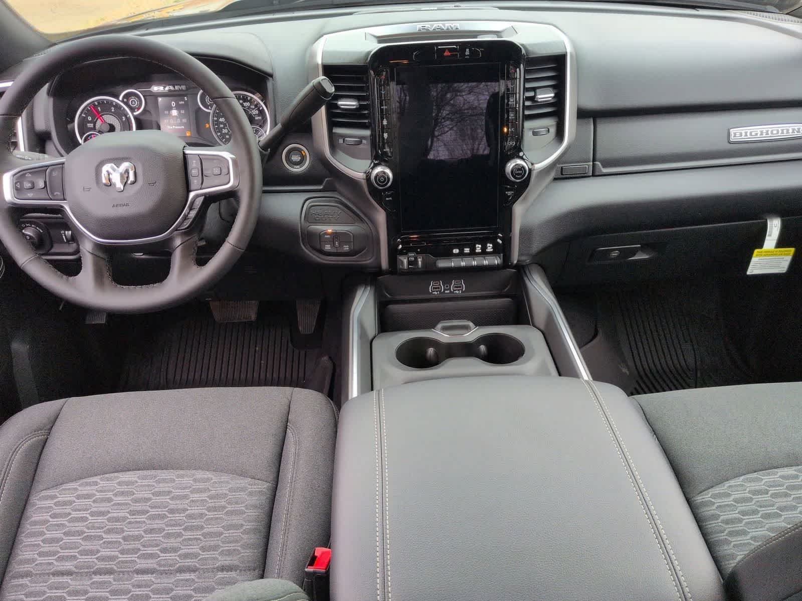 2500 Big Horn is nicely equipped with Big Horn Level 1 Plus Equipment Group (12 Touchscreen Display, 2 Way Rear Headrest Seat, 2nd Row in Floor Storage Bins, 4 Way Front Headrests, 40/20/40 Split Bench Seat, 4G LTE Wi-Fi Hot Spot, 9 Alpine Speakers with Subwoofer, Air Conditioning ATC with Dual Zone Control, Alexa Built-in, Anti-Spin Differential Rear Axle, Apple CarPlay, Auto Power-Folding Mirrors, Auto-Dimming Rear-View Mirror, Black Exterior Mirrors, Connected Travel and Traffic Services, Connectivity - US/Canada, Disassociated Touchscreen Display, Dual Glove Boxes, Emergency Vehicle Alert System (EVAS), Exterior Mirrors Courtesy Lamps, Exterior Mirrors with Heating Element, Exterior Mirrors with Supplemental Signals, Foam Bottle Insert (door Trim Panel), Folding Flat Load Floor Storage, Footwell Courtesy Lamp, For Details, Visit DriveUconnect.com, For More Info, Call 800-643-2112, Forward and Reverse Utility Lights, Front Armrest with Cupholders, Front Center Seat Cushion Storage, Front Seat Back Map Pockets, Global Telematics Box Module, Glove Box Lamp, Google Android Auto, GPS Antenna Input, GPS Navigation, HD Radio, Integrated Voice Command with Bluetooth®, LED Bed Lighting, Locking Lower Glove Box, Luxury Steering Wheel, Manual Adjust 4-Way Front Passenger Seat, Mirror Running Lights, MOPAR Deployable Bed Step, MOPAR Spray in Bedliner, Off-Road Info Pages, Power 2-Way Driver Lumbar Adjust, Power Adjust 8-Way Driver Seat, Power Adjust Mirrors, Power Heated Folding Telescopic Mirrors, Power Telescoping Mirrors, Power-Adjustable Convex Aux Mirrors, Premium Cloth 40/20/40 Bench Seat, Radio: Uconnect 5 Navigation with 12.0 Display, Rear 60/40 Folding Seat, Rear Dome with on/Off Switch Lamp, Remote Start System, Remote USB Port - Charge Only, Selectable Tire Fill Alert, SiriusXM Radio Service, SiriusXM with 360L, Steering Wheel Mounted Audio Controls, Storage Tray, and Trailer Tow Pages), Cold Weather Group (Engine Block Heater and MOPAR Winter Front Grille Cover), Heated Seats and Wheel Group (Heated Front Seats and Heated Steering Wheel), Night Edition (Black Exterior Truck Badging, Black Interior Accents, Black Wheel Center Hub, Body Color Grille-Surround, Gloss Black Nostrils/Mic Black Grille, Painted Front Bumper, Painted Rear Bumper, and Wheels: 20 x 8.0 Black Painted Aluminum), Quick Order Package 24Z Big Horn, 4-Wheel Disc Brakes, 5th Wheel/Gooseneck Towing Prep Group, 6 Speakers, ABS brakes, Air Conditioning, Alloy wheels, AM/FM radio: SiriusXM, Apple CarPlay/Android Auto, Brake assist, Bumpers: chrome, Center Hub, Clearance Lamps, Cloth 40/20/40 Bench Seat, Compass, Delay-off headlights, Delete Deployable Bed Step, Driver door bin, Dual front impact airbags, Dual front side impact airbags, Electronic Stability Control, Front anti-roll bar, Front Center Armrest w/Storage, Front fog lights, Front reading lights, Fully automatic headlights, Heated door mirrors, Illuminated entry, Low tire pressure warning, Manual Adjust 4-Way Driver Seat, Manufacturers Statement of Origin, MOPAR Front and Rear Rubber Floor Mats, Occupant sensing airbag, Outside temperature display, Overhead airbag, Overhead console, Painted Flat Wheel-to-Wheel Side Steps, Panic alarm, ParkView Rear Back-Up Camera, Passenger door bin, Passenger vanity mirror, Power door mirrors, Power steering, Power windows, Radio data system, Radio: Uconnect 5 with 8.4 Display, Rear anti-roll bar, Rear Folding Seat, Rear seat center armrest, Rear step bumper, Rear window defroste