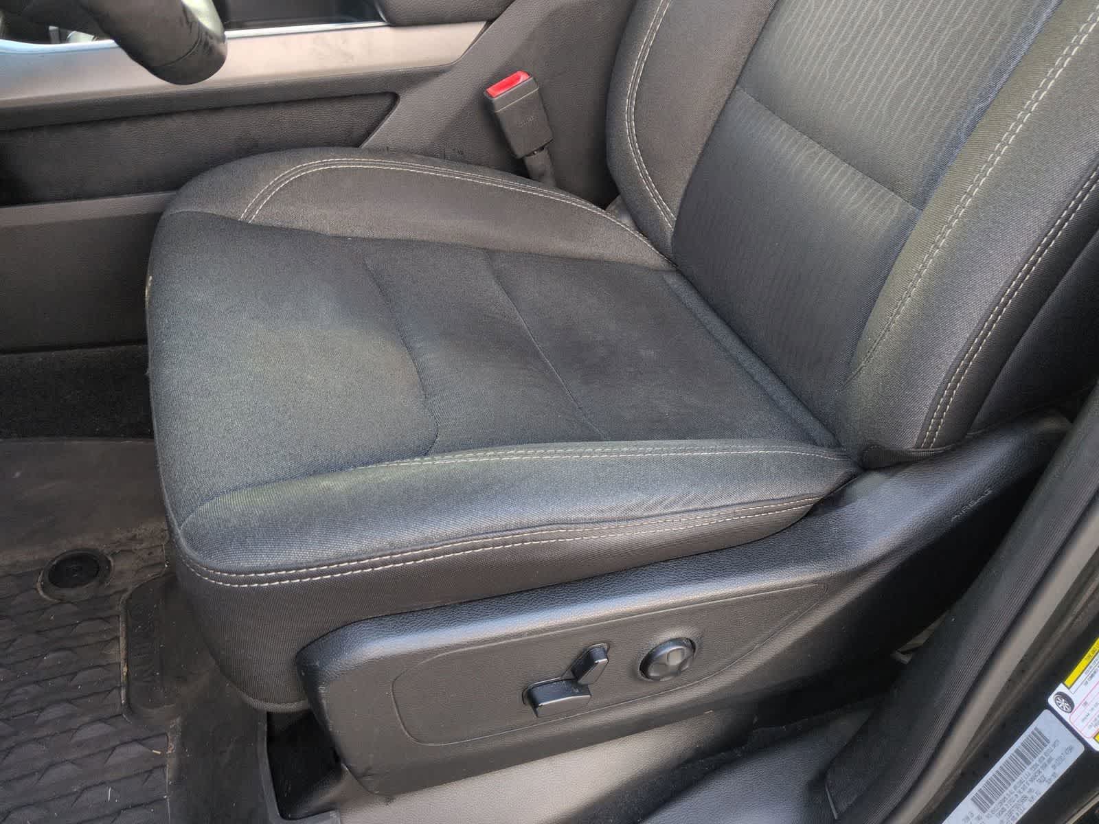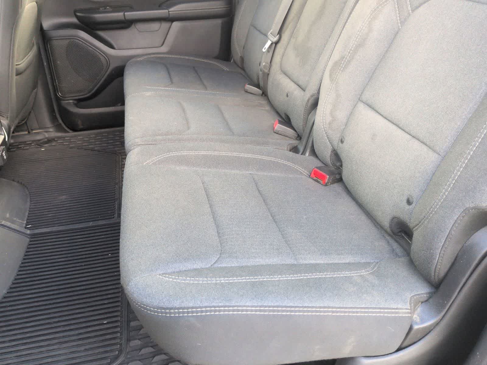 The interior of this Ram 1500 is just as impressive, featuring premium Deluxe Cloth Bucket Seats, a Full Length Floor Console, and Power 8-Way Driver Seat with Lumbar Adjust. The Black Interior Accents and Dual Exhaust with Black Tips add a touch of style and sophistication.