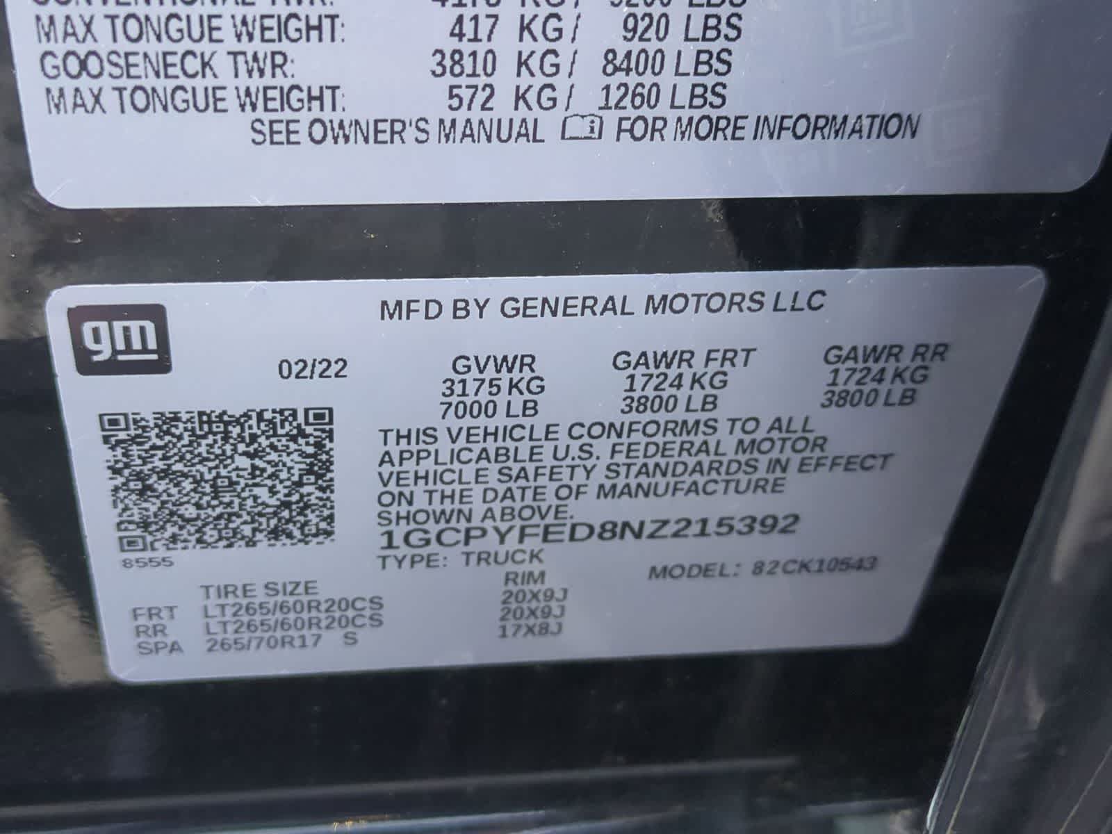 - Front Tire Size: LT265/60R20