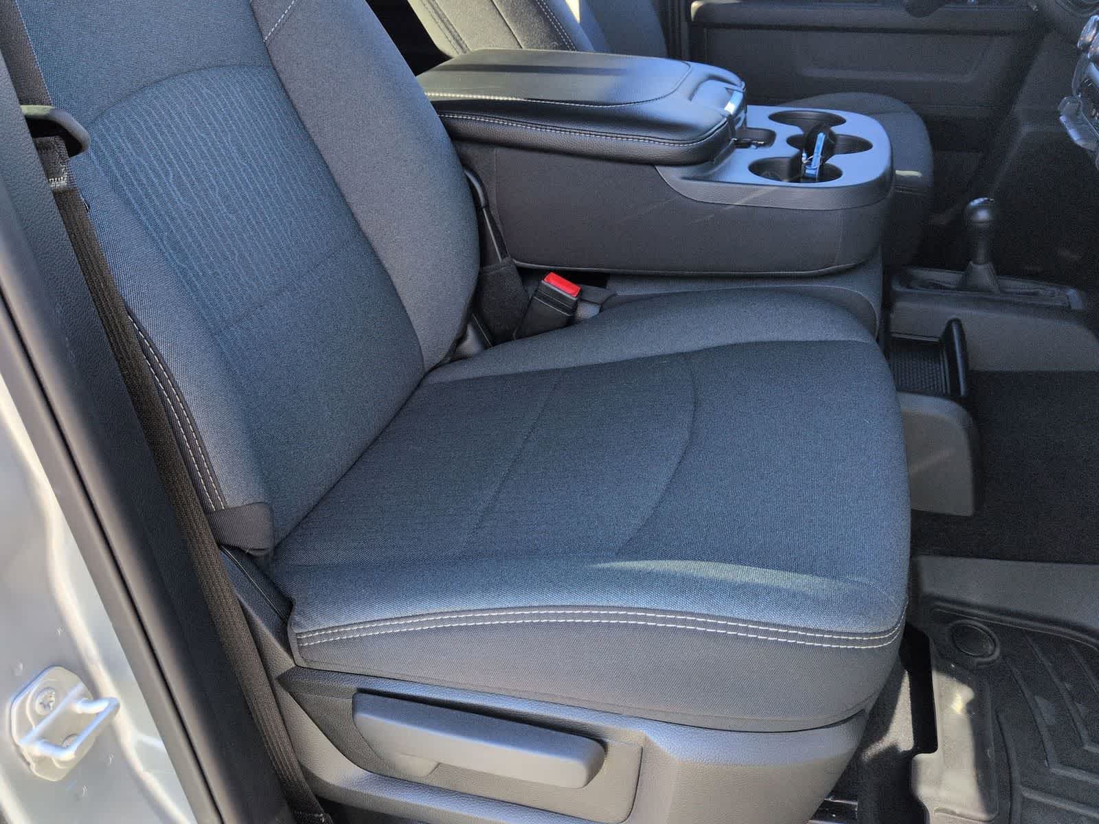 The interior of the 2024 Ram 3500 Tradesman is designed with your comfort and productivity in mind. The Black Cloth 40/20/40 Bench Seat provides ample room for you and your crew, while the Trailer Brake Control and Trailer Light Check features make towing a breeze.